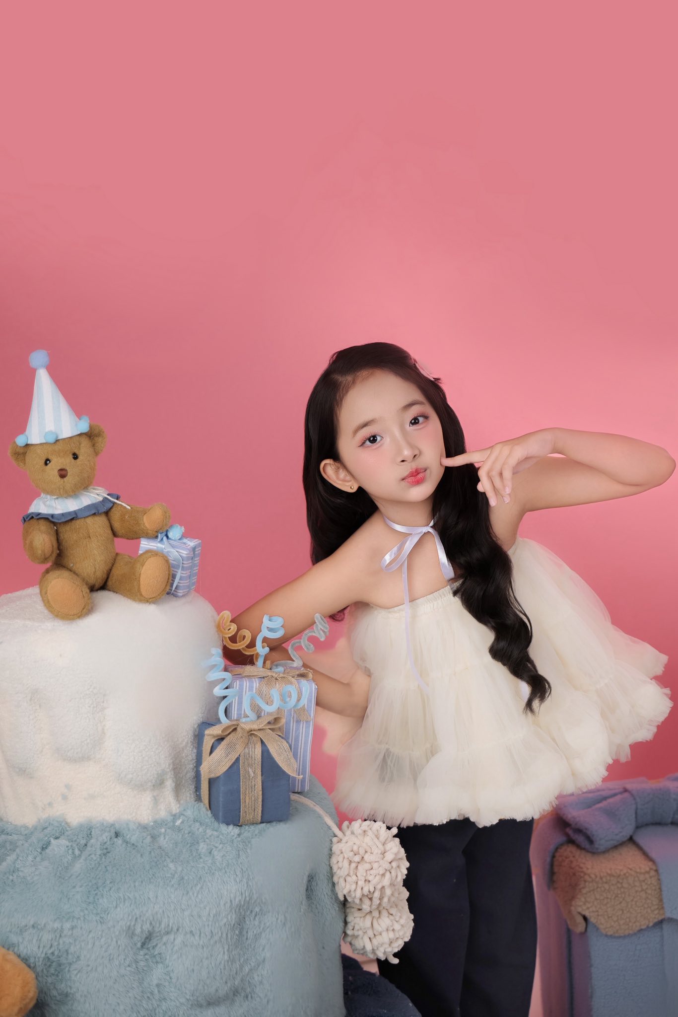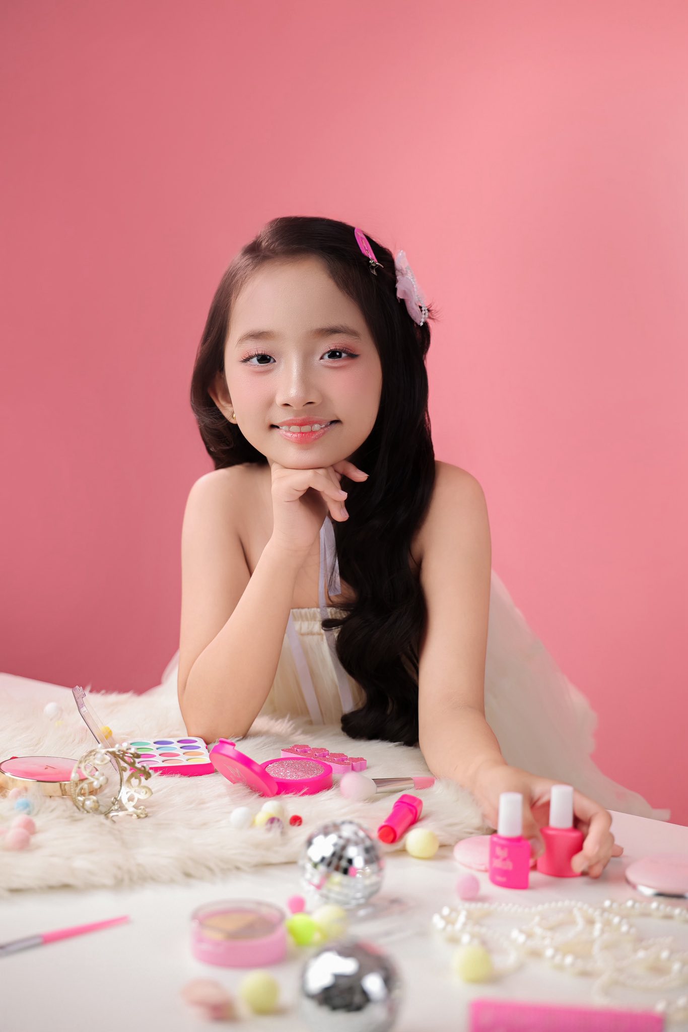 Thần thái của Anna trong từng khung hình mới là điều đáng bàn. Cô bé không hề tỏ ra ngượng ngùng hay rụt rè, mà ngược lại, rất tự tin tạo dáng, từ những biểu cảm nũng nịu bên chiếc bánh sinh nhật khổng lồ cho đến những khoảnh khắc pose dáng "chuẩn" như một người mẫu chuyên nghiệp. Lối trang điểm nhẹ nhàng càng làm tôn lên đường nét thanh tú và đôi mắt biết nói của Anna, khiến người hâm mộ không khỏi xuýt xoa. Dù từ nhỏ đã được mẹ - nữ hoàng dancesport Khánh Thi - đặt cho biệt danh "mợ chảnh" bởi biểu cảm luôn lạnh lùng, ít cười nhưng càng lớn, Anna càng hoạt bát, tươi tắn hơn hẳn.