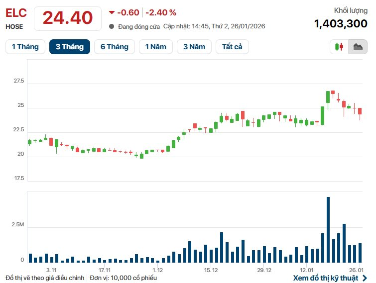Theo dữ liệu từ thị trường, cổ phiếu ELC cùng với các mã cổ phiếu công nghệ khác như CMG đã tạo nên "cơn sóng" mạnh mẽ vào giữa tháng 1/2026.