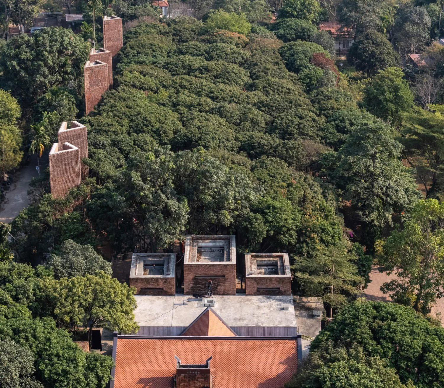 Vật liệu chủ đạo được sử dụng trong dự án này là gạch đất sét truyền thống.