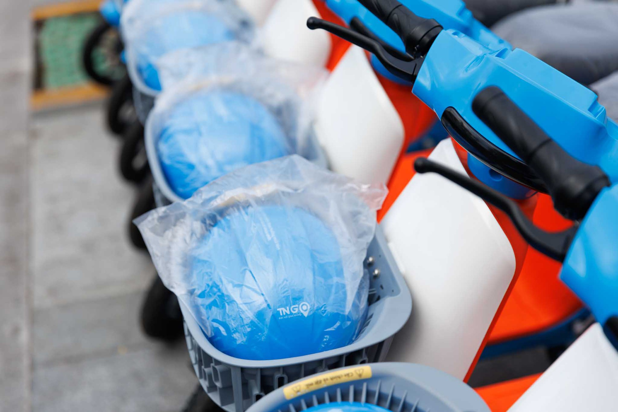 Mũ bảo hiểm được trang bị sẵn trên xe phục vụ nhu cầu đi lại của người dân