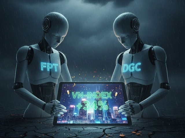 Còn nhớ thời điểm đầu năm, cơn sốt trí tuệ nhân tạo (AI) bùng nổ trên toàn cầu đã tạo nên một kỳ vọng mãnh liệt tại thị trường Việt Nam. AI len lỏi vào mọi ngóc ngách của đời sống, trở thành từ khóa "vàng" khiến nhà đầu tư tin rằng nhóm cổ phiếu công nghệ và bán dẫn sẽ là tâm điểm của dòng tiền. Thế nhưng, trái ngược với sự thăng hoa của chỉ số chung, thực tế lại diễn ra đầy khắc nghiệt với những "ông lớn" như Tập đoàn FPT (mã: FPT) hay Hóa chất Đức giang (mã: DGC).