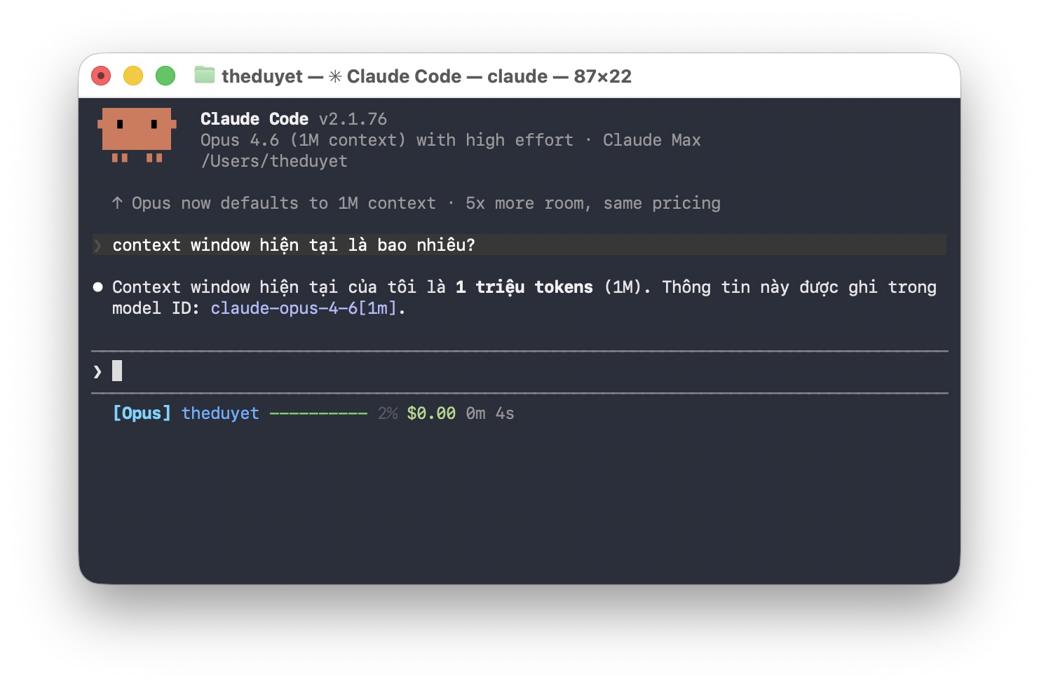 Với Claude Code - công cụ lập trình dòng lệnh của Anthropic - ngữ cảnh 1 triệu token giờ được tích hợp mặc định cho người dùng gói Max, Team và Enterprise khi sử dụng Opus 4.6. Trước đây, các phiên làm việc dài trên Claude Code thường phải "compaction" - tức nén và tóm tắt phần hội thoại cũ để nhường chỗ, dẫn đến mất thông tin quan trọng. Với 1 triệu token, toàn bộ cuộc hội thoại được giữ nguyên, giúp giảm thiểu tình trạng AI "quên" ngữ cảnh giữa chừng.