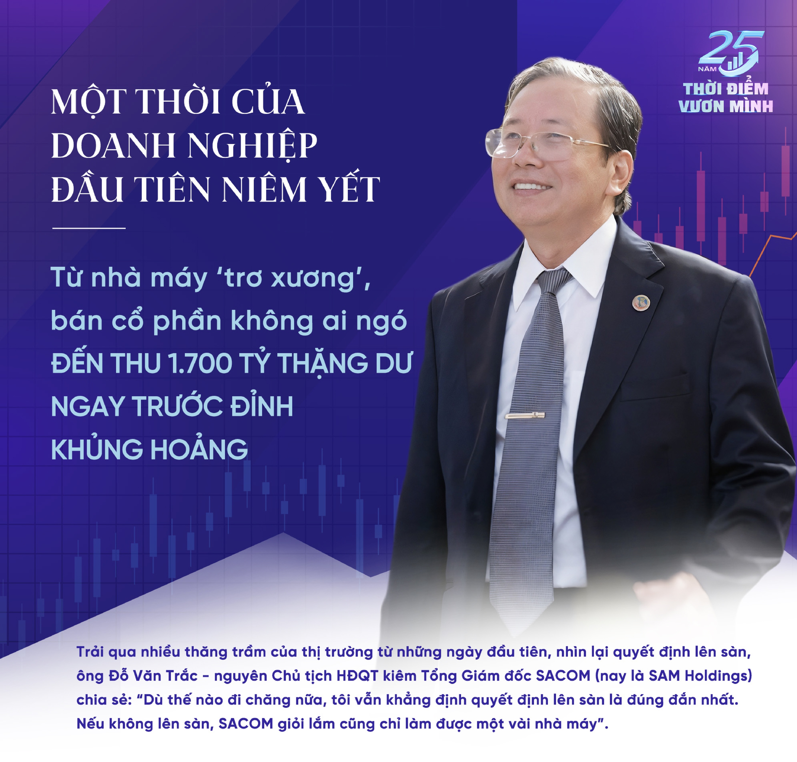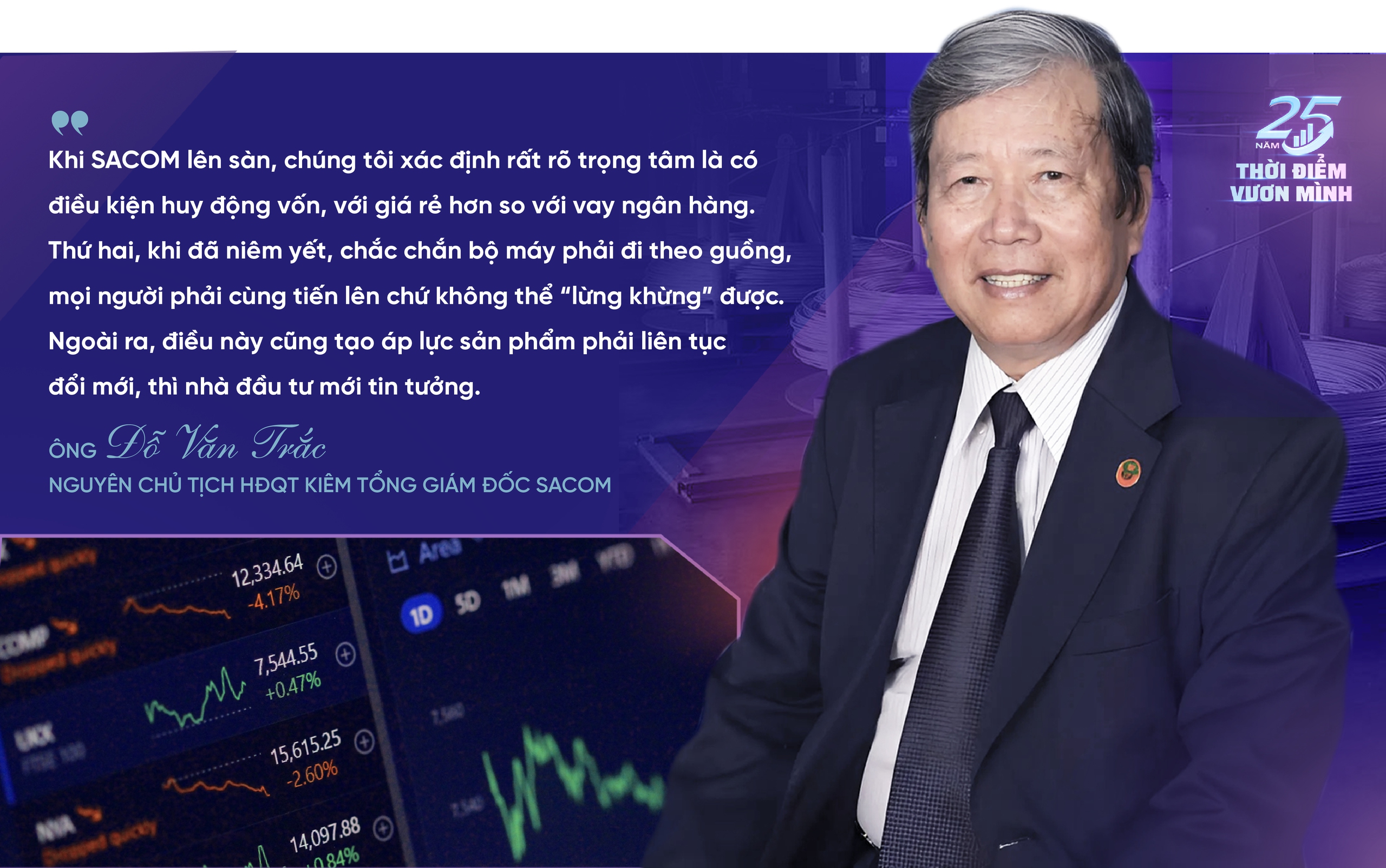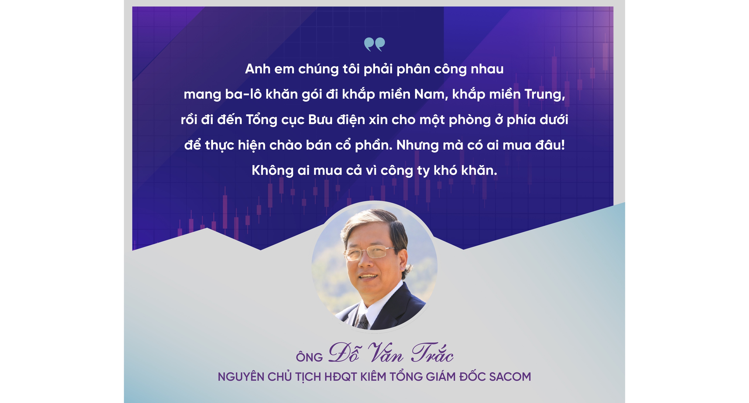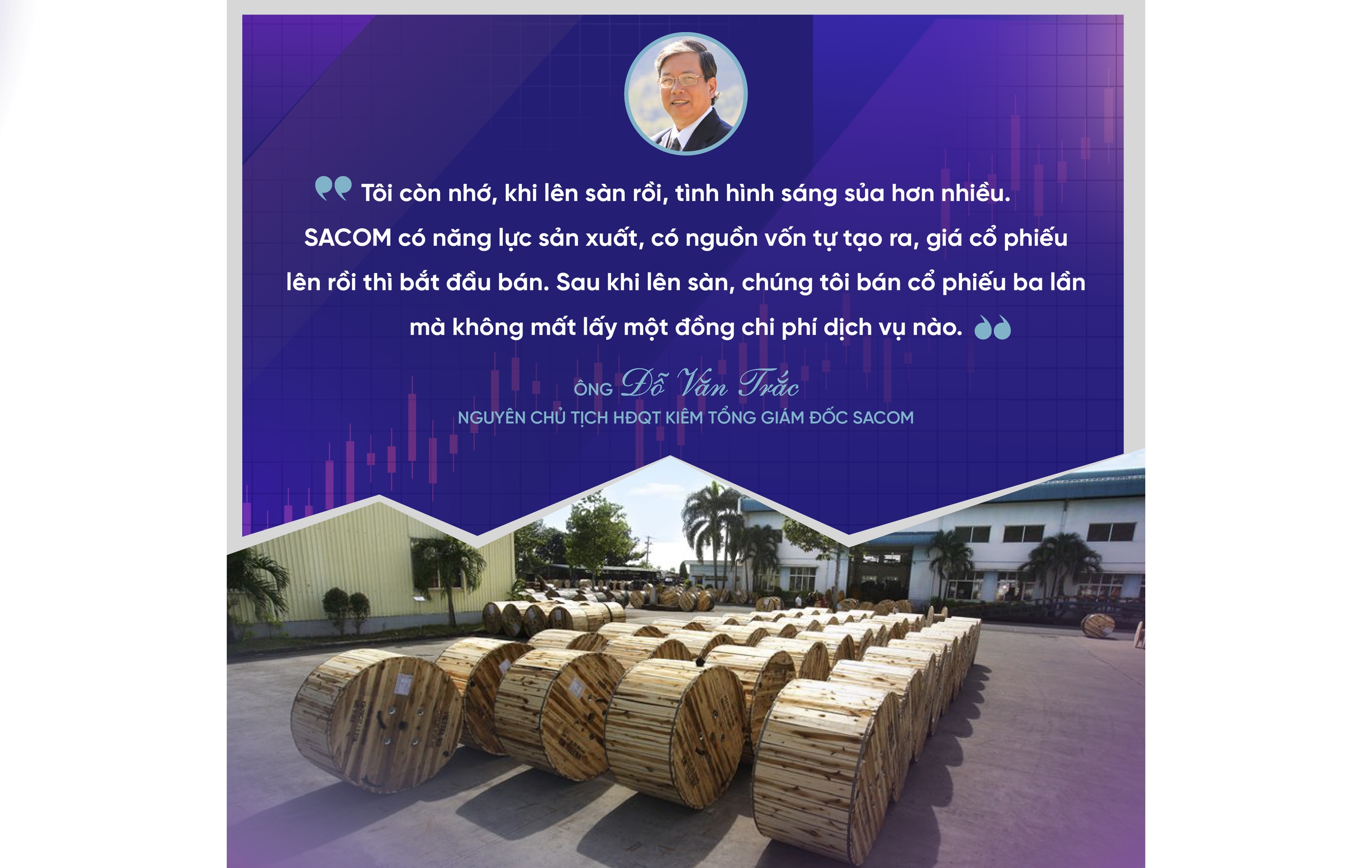 Còn đối với SACOM, sau khi ông Lê Văn Châu giới thiệu xong, chúng tôi thấy tốt quá! Bởi, lúc đó vay vốn khó lắm. Trong khi đó, đoàn Ủy ban Chứng khoán đến giới thiệu quy trình và nói: "Thị trường chứng khoán là một kênh huy động vốn rất rẻ cho doanh nghiệp". Nghe đến đấy, chúng tôi thấy sướng rồi, bởi thị trường mở cho mình một cơ hội để huy động vốn.