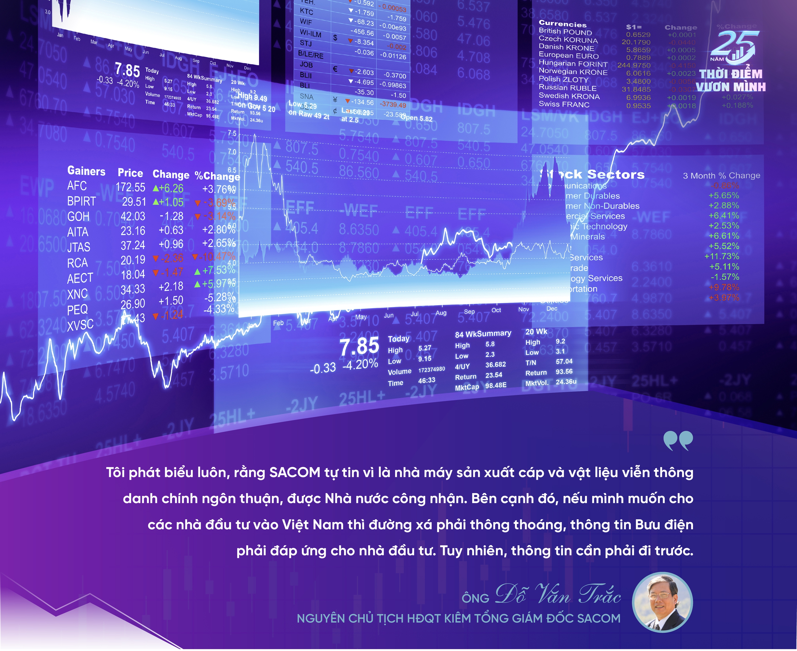 Tôi phát biểu luôn, rằng SACOM tự tin vì là nhà máy sản xuất cáp và vật liệu viễn thông danh chính ngôn thuận, được Nhà nước công nhận. Bên cạnh đó, nếu mình muốn cho các nhà đầu tư vào Việt Nam thì đường xá phải thông thoáng, thông tin Bưu điện phải đáp ứng cho nhà đầu tư. Tuy nhiên, thông tin cần phải đi trước.