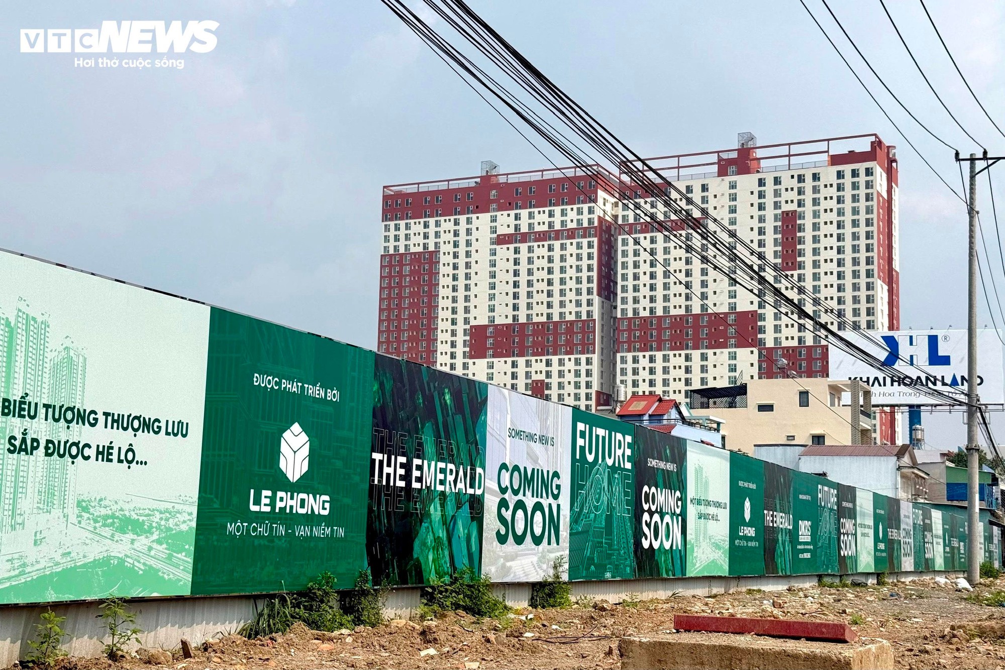 Cách đó khoảng 400m là dự án The Emerald Boulevard do Tập đoàn Lê Phong đầu tư được quây tôn, căng biển quảng cáo và chuẩn bị ra mắt thị trường. Dự án chưa công bố giá chính thức, theo giới môi giới, mức giá dự kiến có thể lên 70 triệu đồng/m².