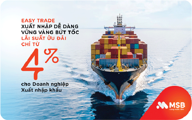 Là giải pháp tài chính chuyên sâu, tổng thể, đáp ứng tốt nhất nhu cầu về vốn cho nhóm khách hàng xuất nhập khẩu, gói Giải pháp Easy Trade của MSB mang đến cho khách hàng doanh nghiệp một nguồn vốn dồi dào, đặc biệt là vốn tín chấp lên đến 200 tỷ đồng. Nguồn trợ lực này cho phép các doanh nghiệp bổ sung kịp thời nguồn vốn, nắm bắt thời cơ vàng trong kinh doanh và đảm bảo quy trình sản xuất cũng như tiến độ xuất khẩu hàng hóa.