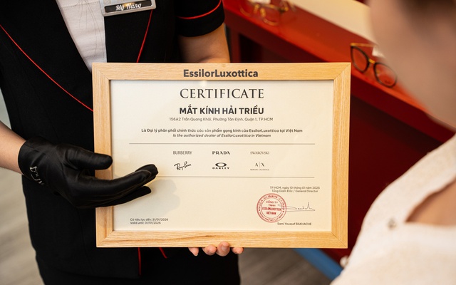 Kính Hải Triều là đại lý chính hãng ủy quyền của RayBan và là đối tác chính thức của EssilorLuxottica - tập đoàn quản lý thương hiệu RayBan toàn cầu. Để được công nhận, Hải Triều phải vượt qua bộ tiêu chuẩn khắt khe của EssilorLuxottica về không gian trưng bày, quy trình vận hành và năng lực tư vấn của đội ngũ, và duy trì điều đó xuyên suốt quá trình hoạt động.