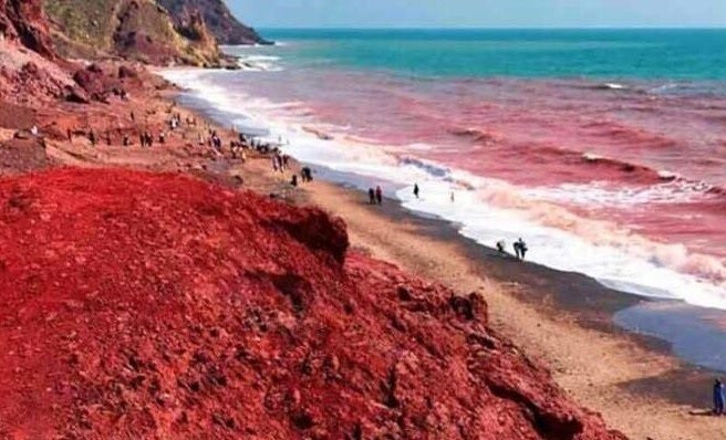 Những hình ảnh ghi lại tại đảo Hormuz – một hòn đảo nhỏ nằm ngoài khơi Iran, thuộc Vịnh Ba Tư – đang khiến cộng đồng mạng toàn cầu nổi da gà. Sau trận mưa lớn kéo dài, nước mưa chảy từ các vách đá cao xuống biển, kéo theo lớp đất đỏ sẫm, khiến cả bờ biển và mặt nước nhuộm một màu đỏ thẫm như máu.