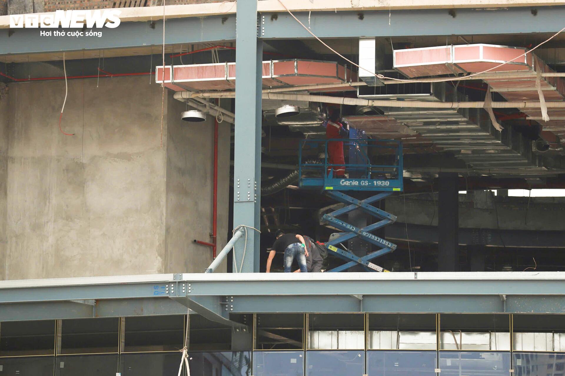 Ở khu vực tầng 1 của nhà chính, các hạng mục lắp đặt kính đang được triển khai. Theo thiết kế, toàn bộ công trình trung tâm sẽ được bao phủ bằng hệ thống kính, tạo không gian mở, tận dụng ánh sáng tự nhiên.