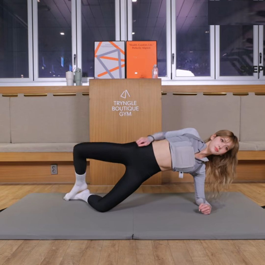 Nằm nghiêng, chống một tay xuống sàn, hai chân co nhẹ. Giữ thân người ổn định, sau đó mở - khép gối kiểu “vỏ sò”. Khi nâng hông lên, chú ý không để hạ xuống mà chủ động kéo nhẹ về sau để tăng độ siết ở mông và cơ liên sườn. Đây là bài tập hiệu quả để cải thiện phần eo hai bên và hạn chế tình trạng hông bè.