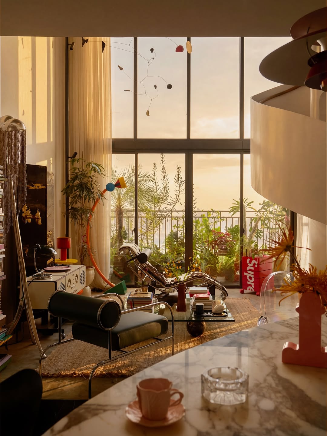 Căn duplex của vợ chồng Khánh Linh tọa lạc ở TP.HCM, có diện tích 140m², được thiết kế theo phong cách Eclectic phóng khoáng, nơi mỗi góc nhỏ đều mang đậm dấu ấn nghệ thuật. Để hoàn thiện không gian đúng gu, cặp đôi đã dành nhiều thời gian chọn lọc từng món nội thất, decor sao cho vừa ý nhất. Dù bảng màu khá rực rỡ, căn nhà vẫn giữ được sự hài hòa nhờ cách sắp xếp khoa học, tạo cảm giác ấm áp và dễ chịu.