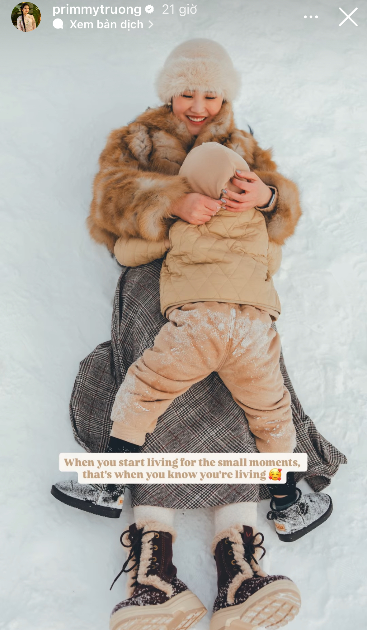 Primmy Trương (vợ Phan Thành - TGĐ Saigon Square) lựa chọn Vườn quốc gia Banff - một trong những điểm du lịch nổi tiếng nhất của Canada để mở đầu cho chuyến đi trong kỳ nghỉ lễ này. Nàng dâu hào môn hào hứng chia sẻ hình ảnh trong tuyết kèm caption: “Một lần trong đời”.