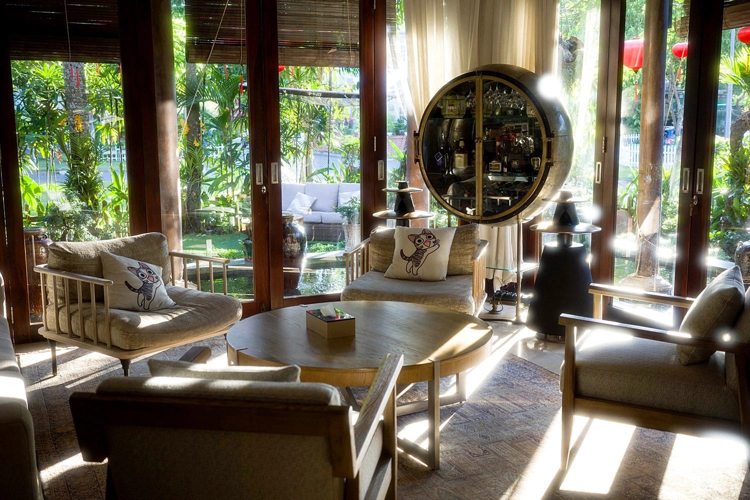 Bên trong biệt thự, không gian được bố trí thoáng đãng, kết hợp hài hòa giữa nét cổ điển Á Đông và tiện nghi hiện đại. Phòng khách rộng rãi nổi bật với nội thất cao cấp, trong khi khu bếp và bàn ăn được thiết kế mở, tạo sự kết nối liền mạch và ấm cúng.