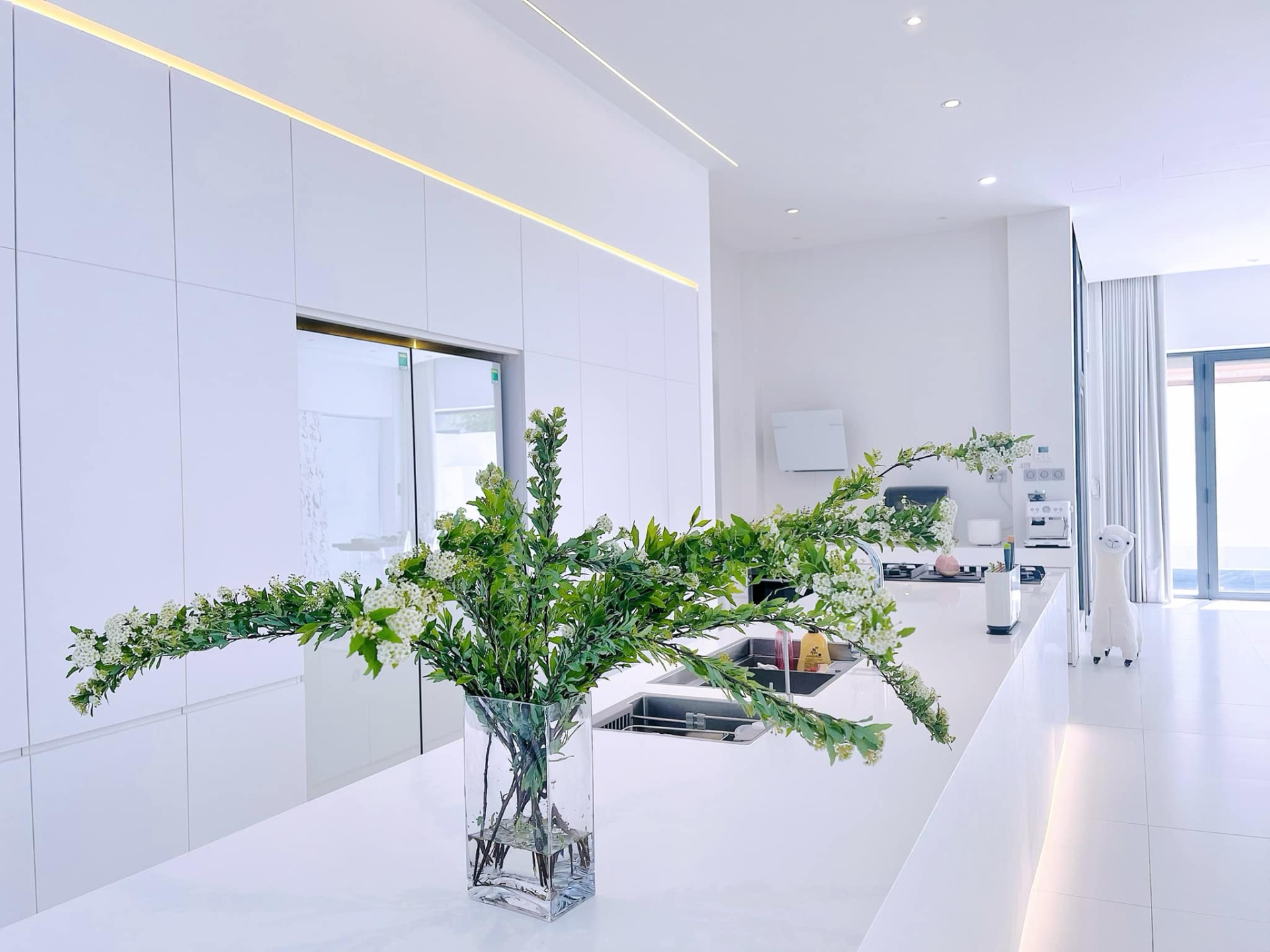 Đến năm 2021, cả hai quyết định thay đổi hoàn toàn khi phá dỡ căn biệt thự cũ để xây dựng lại từ đầu. Sau quá trình thi công, những hình ảnh hiếm hoi về tổ ấm mới dần được hé lộ. Căn nhà hiện tại mang tông trắng chủ đạo, theo phong cách hiện đại và sang trọng, với không gian được mở rộng tối đa để phục vụ sinh hoạt chung của gia đình, đặc biệt là những khoảnh khắc sum vầy.