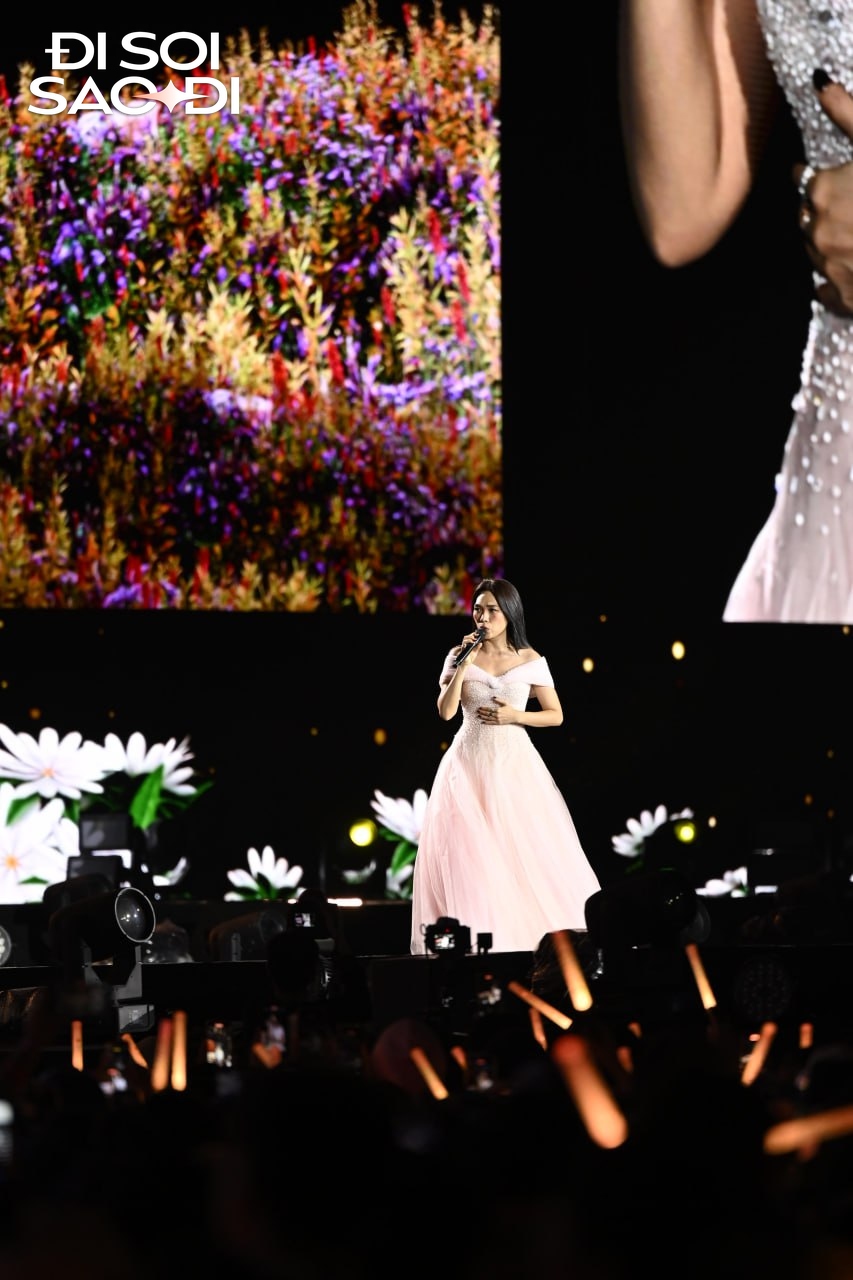 Đáng chú ý, sau khi thể hiện ca khúc Nơi Mình Dừng Chân, màn hình lớn trên sân khấu bất ngờ hiện lên hình vẽ Mỹ Tâm và Mai Tài Phến. Chi tiết này ngay lập tức khiến cả sân vận động xôn xao. Nhân tiện chia sẻ, Mỹ Tâm nhẹ nhàng giới thiệu: “À, bạn ấy là diễn viên trong phim… Mai Tài Phến”, rồi bất ngờ quay sang tìm kiếm giữa biển người phía dưới. “Bạn ngồi đâu rồi, giơ cánh tay cho mình thấy”, nữ ca sĩ nói trong tiếng reo hò không ngớt của 40 nghìn khán giả. Khoảnh khắc Mỹ Tâm công khai gọi tên Mai Tài Phến trước đám đông khổng lồ nhanh chóng trở thành điểm nhấn của đêm diễn, được chia sẻ rộng rãi trên mạng xã hội chỉ sau ít phút.