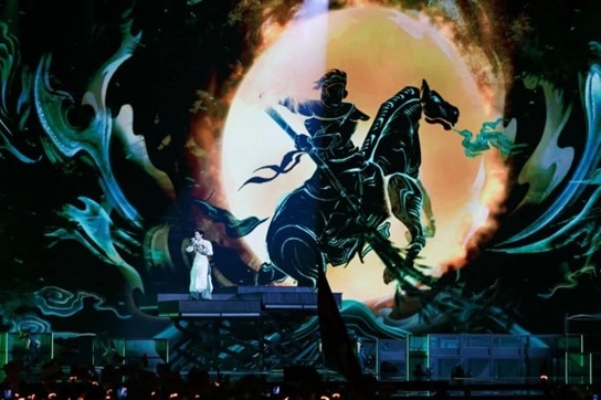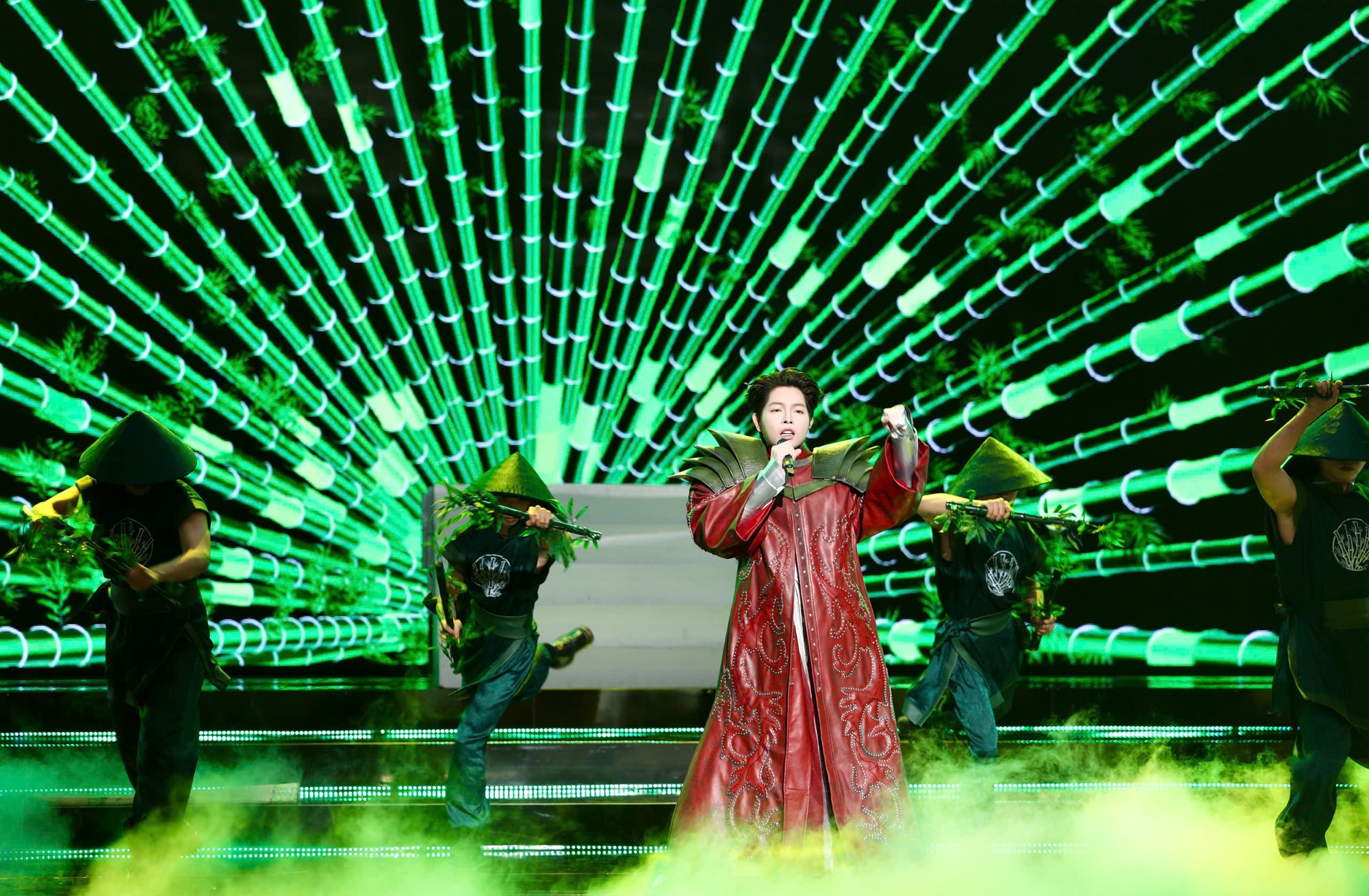Phần biểu diễn “Đất nước lời ru - Phù Đổng Thiên Vương” kết hợp nét đẹp văn hóa dân tộc với âm nhạc hiện đại của nam ca sĩ khiến cả khán phòng bùng nổ.