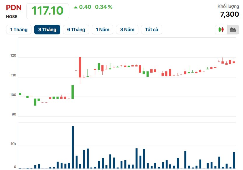 Trên thị trường chứng khoán, cổ phiếu PDN đang duy trì vùng giá quanh mức 117.000 đồng/cp, tương ứng vốn hóa thị trường đạt hơn 6.500 tỷ đồng. Với việc duy trì dòng tiền ổn định và chính sách cổ tức tiền mặt đều đặn, PDN tiếp tục khẳng định vị thế là một trong những doanh nghiệp cảng biển có nền tảng tài chính lành mạnh tại khu vực Đông Nam Bộ.