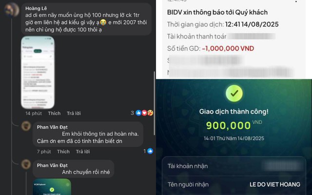Người đã gửi trả 900.000 đồng cho Hoàng là anh Phan Văn Đạt. Chia sẻ với chúng tôi, anh Đạt cho biết, vào thời điểm chuyển khoản cho Hoàng, anh cũng không kiểm tra hay suy nghĩ quá nhiều. Tuy nhiên, sau khi thấy được thông tin về việc có tài khoản khác đăng tải nội dung tương tự, anh đã hỏi lại Hoàng cũng như video call (gọi điện trực tiếp qua video) và được Hoàng giải thích đó là tài khoản phụ. Anh đã tin tưởng vào điều này.