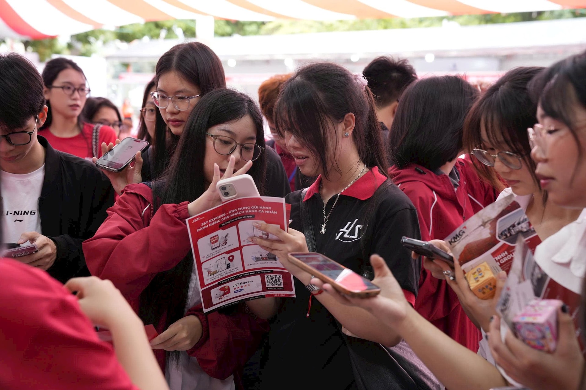 Các bạn trẻ tham gia trải nghiệm dịch vụ gửi hàng cá nhân tại một sự kiện tại Hà Nội.