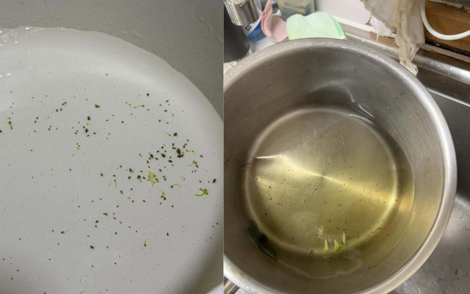 Vì đã cẩn thận cắt nhỏ, dùng vật nặng đè cho rau ngập sâu trong nước muối suốt 1 tiếng đồng hồ và thay nước tới 3 lần, cô hoàn toàn tự tin mình đã có một nguyên liệu sạch hoàn hảo cho bữa tối. Thế nhưng, ngay khi vừa thả rau vào nồi nước sôi, sự tự tin đó nhanh chóng biến thành nỗi kinh hoàng. "Tôi nhìn thấy rất nhiều mẩu đen nổi lên, khi nhìn kỹ mới nhận ra chúng là côn trùng. Càng luộc, chúng càng chui ra nhiều không đếm xuể" , người phụ nữ kinh hãi chia sẻ.