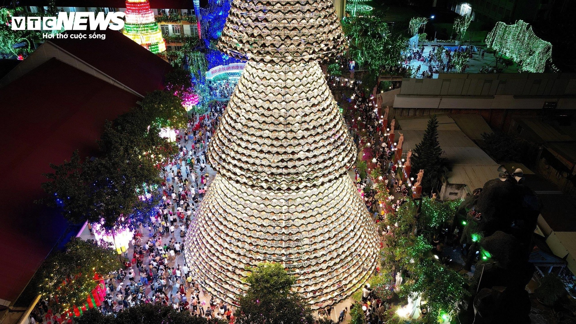 Nhìn từ trên cao, cây thông khổng lồ thắp sáng cả một vùng trời.