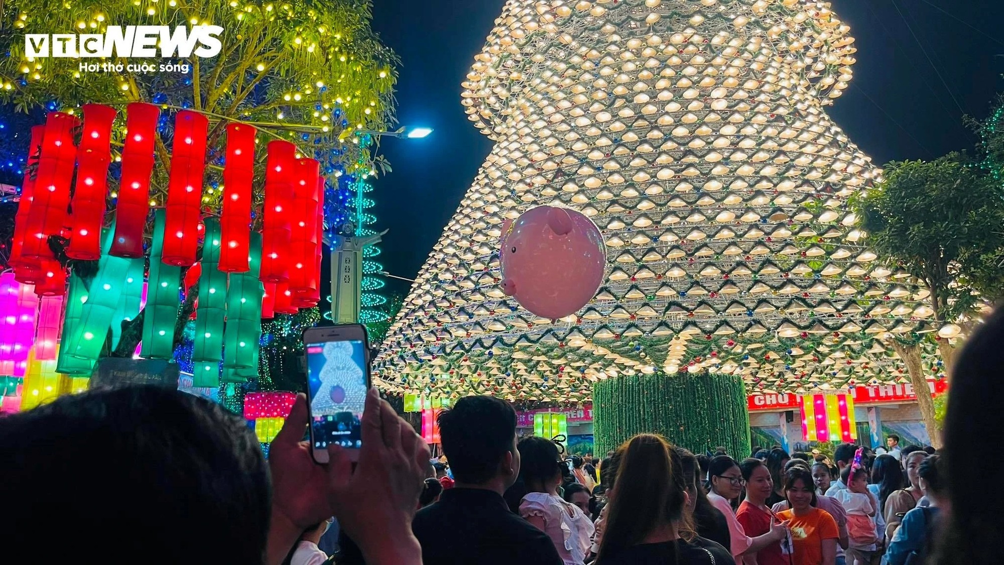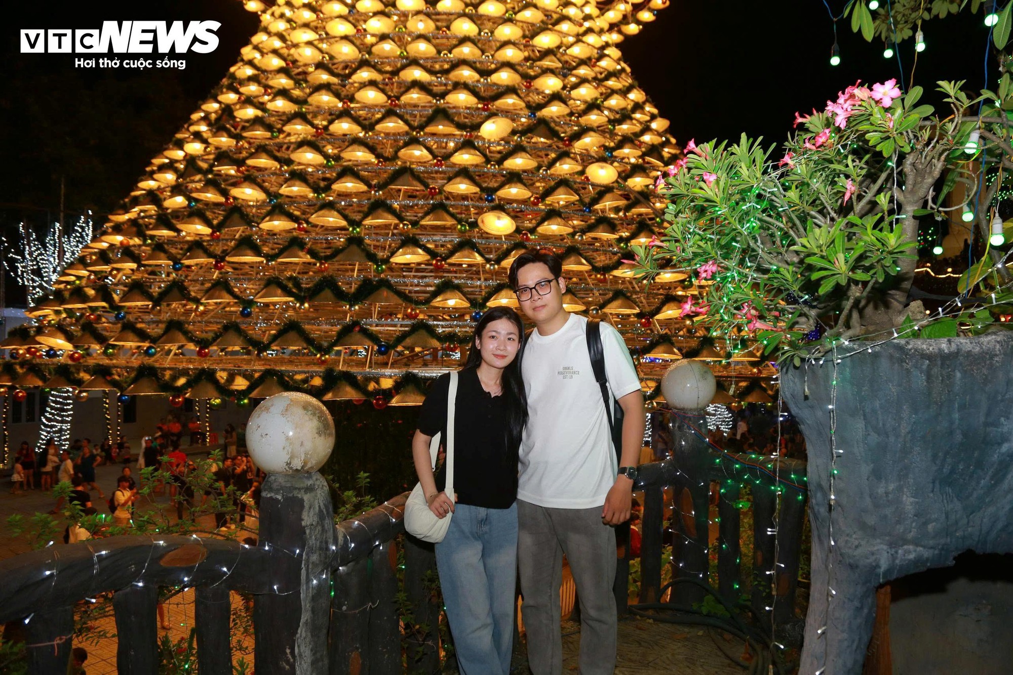 Năm nay, nơi đây tiếp tục thu hút đông đảo người dân và du khách bởi cây thông Noel khổng lồ, được kết từ gần 3.000 chiếc nón lá độc đáo.