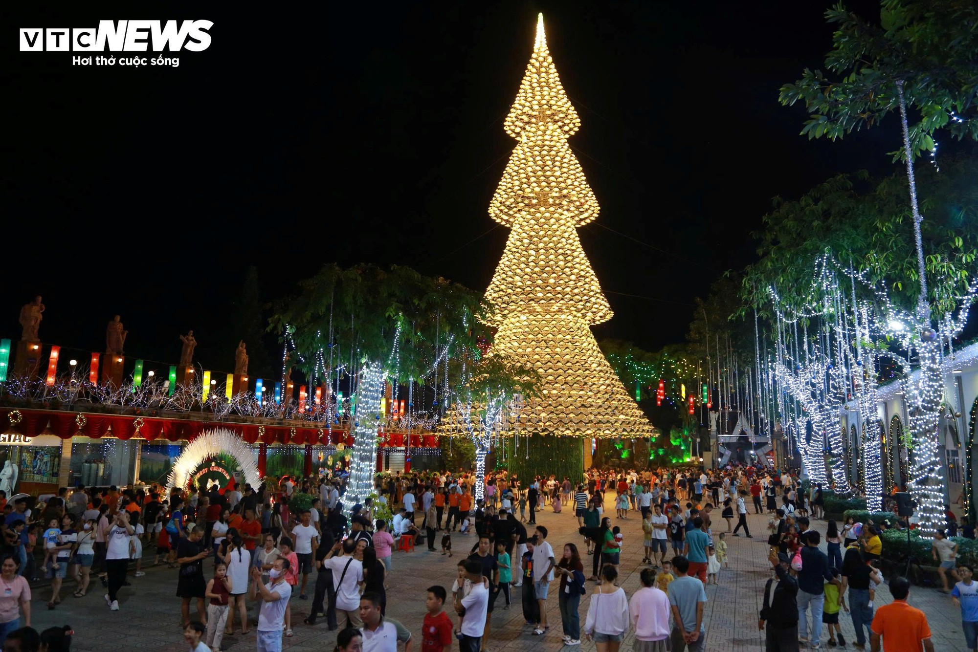 Giáo xứ Hà Phát ghi nhận hàng nghìn lượt khách đến chụp hình với cây thông khổng lồ mỗi ngày.