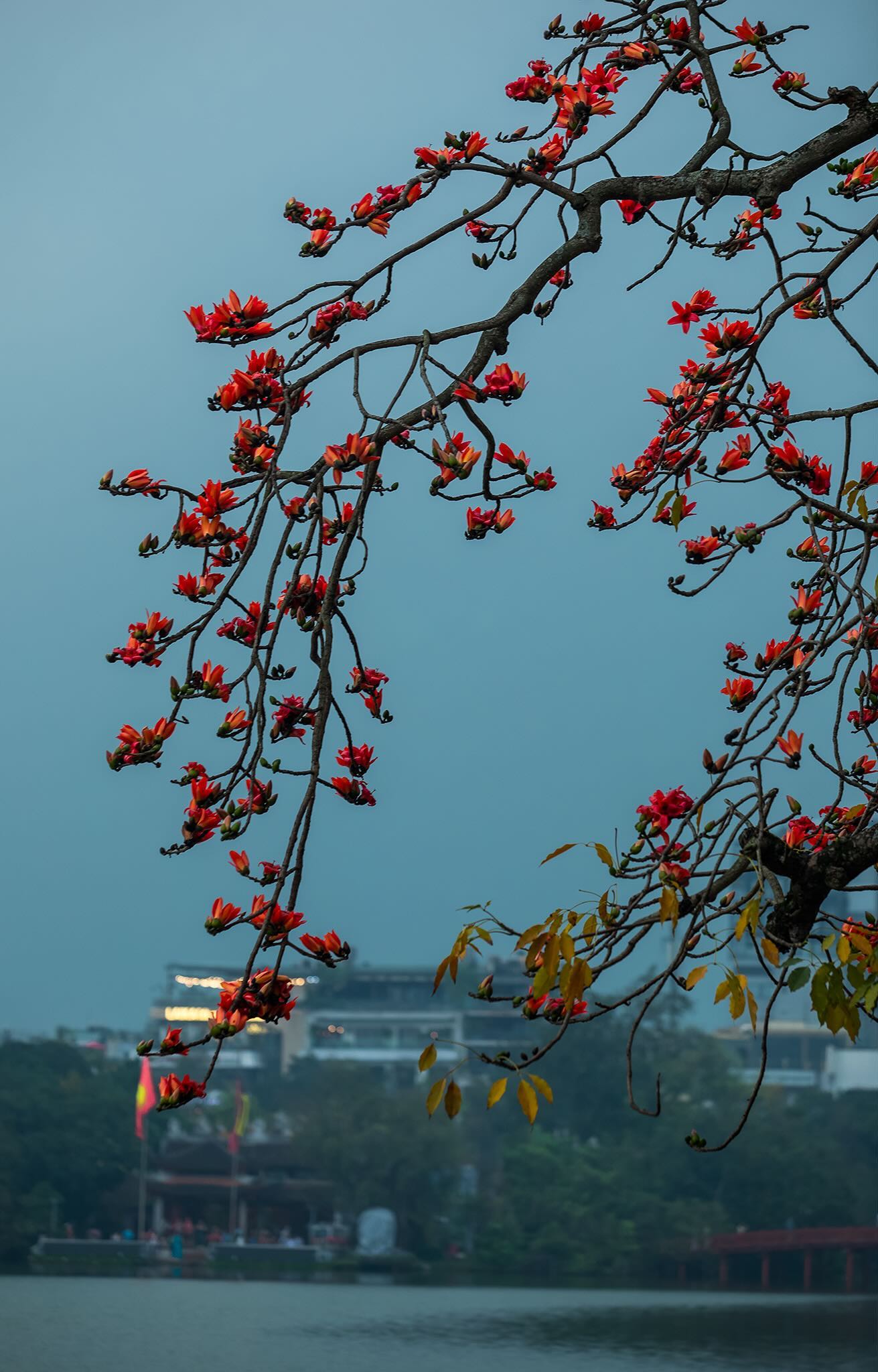 Trước khi bung nở những nụ hoa chói lọi như ngọn lửa non, thân cây khô khốc ấy đã kiên nhẫn trút bỏ lớp vỏ cũ kỹ, ấp ủ từng nhựa sống qua những ngày giá rét để rồi tựa như những chiếc lá nhỏ đợi mùa xuân, âm thầm đâm chồi và bừng sáng đúng vào lúc đất trời giao mùa. Từng bông hoa gạo to bản, cánh dày dặn đỏ tươi, rụng xuống thảm cỏ xanh hay trôi lững lờ trên mặt nước hồ xanh ngắt đều tạo nên một bức tranh đẹp đến nao lòng.