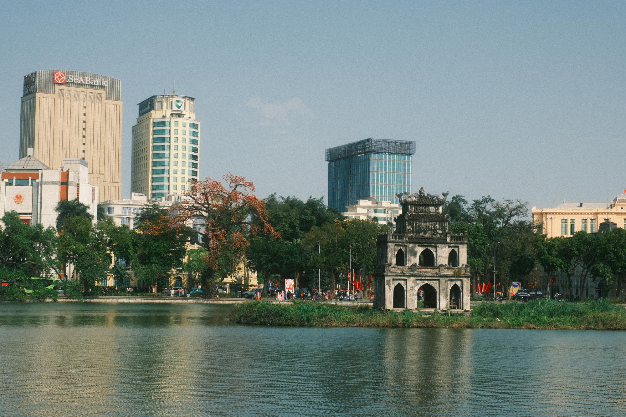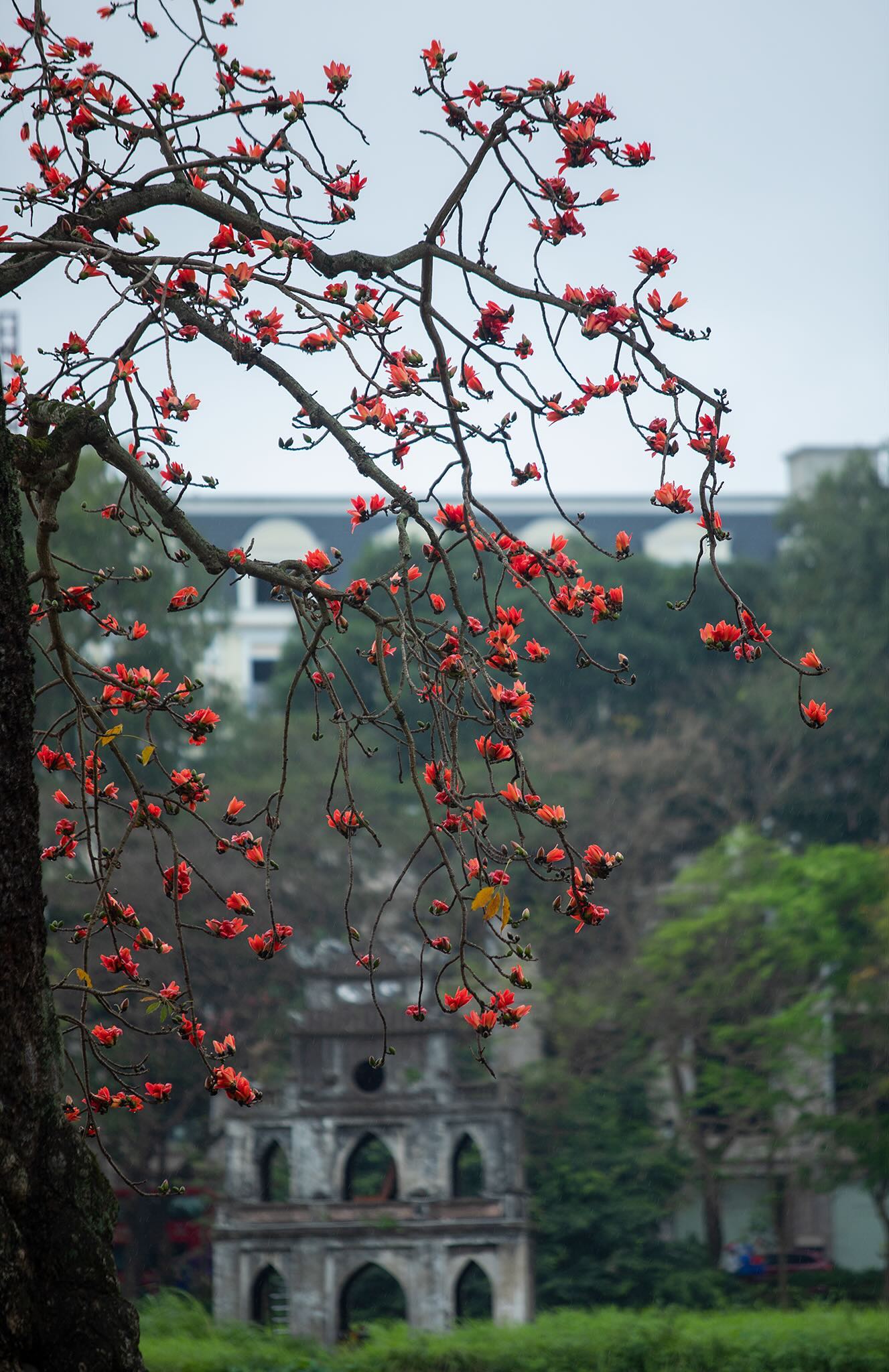 Tháng 3 về, khi thời tiết Hà Nội bừng nở những vạt nắng xuân cũng là lúc người ta rủ nhau lên Hồ Gươm để ngắm "cụ gạo" trút lá, bung nở những nụ hoa đỏ rực.