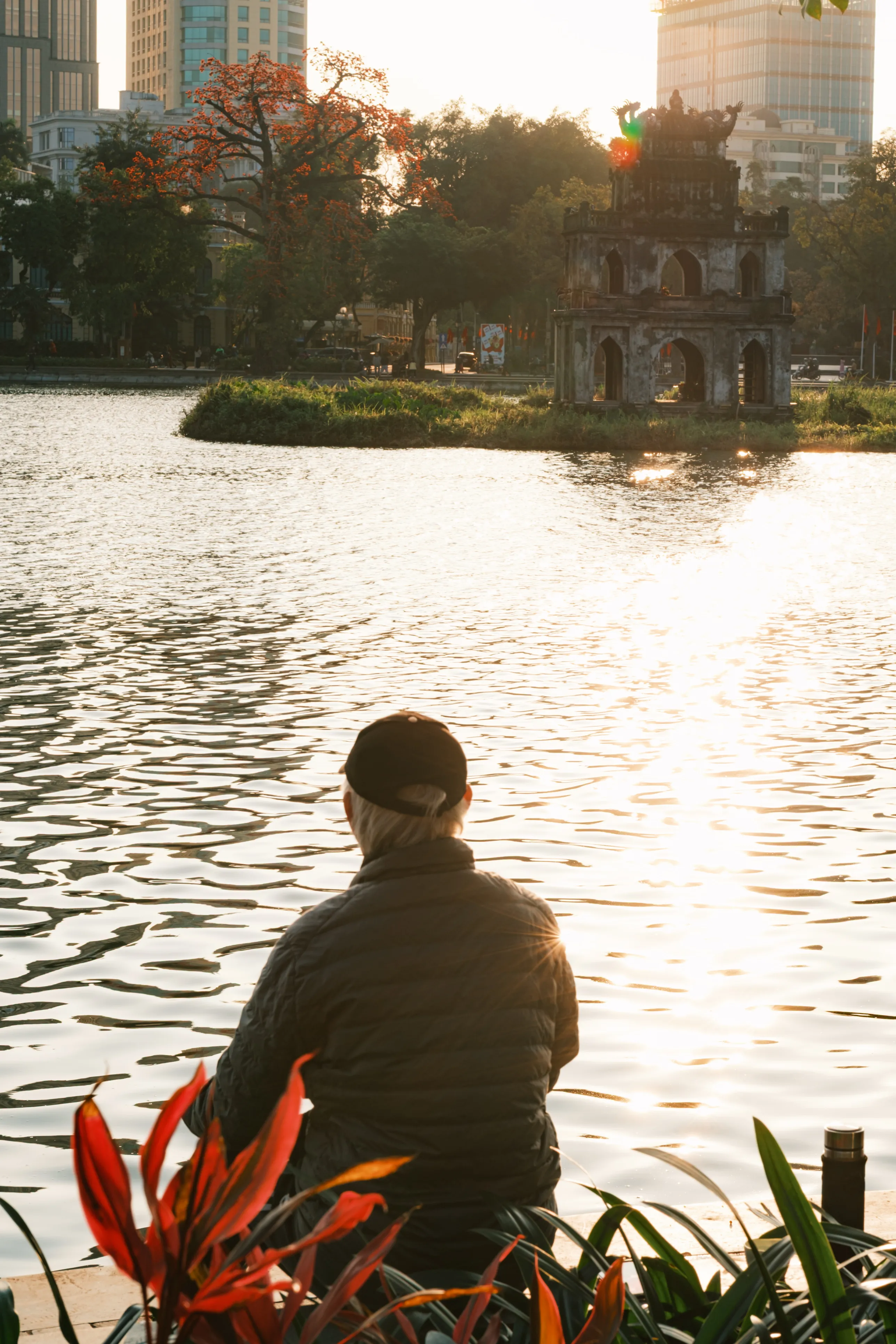 Trong bối cảnh áp lực cuộc sống ngày càng lớn, người ta thường có xu hướng tìm kiếm những điều giản dị để chữa lành tâm hồn. "Cụ gạo" bên bờ Hồ Gươm chính là một liều thuốc tinh thần miễn phí và tuyệt vời như thế. Đứng dưới tán cây rợp bóng đỏ rực, hít thở bầu không khí mang hơi ẩm của mặt hồ, dường như mọi lo toan về cơm áo gạo tiền, những deadline công việc dang dở hay những muộn phiền cá nhân đều tạm thời được gác lại.