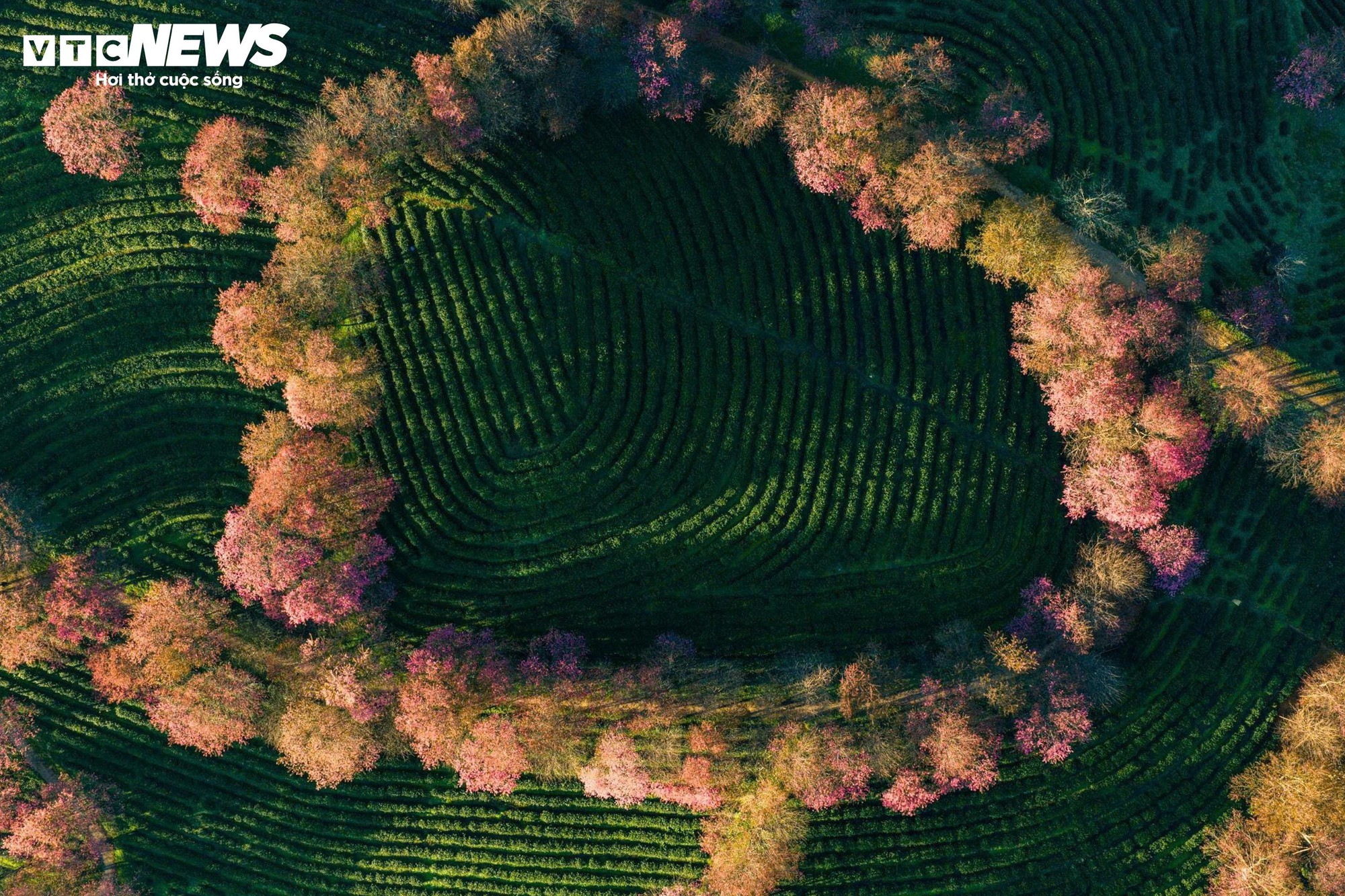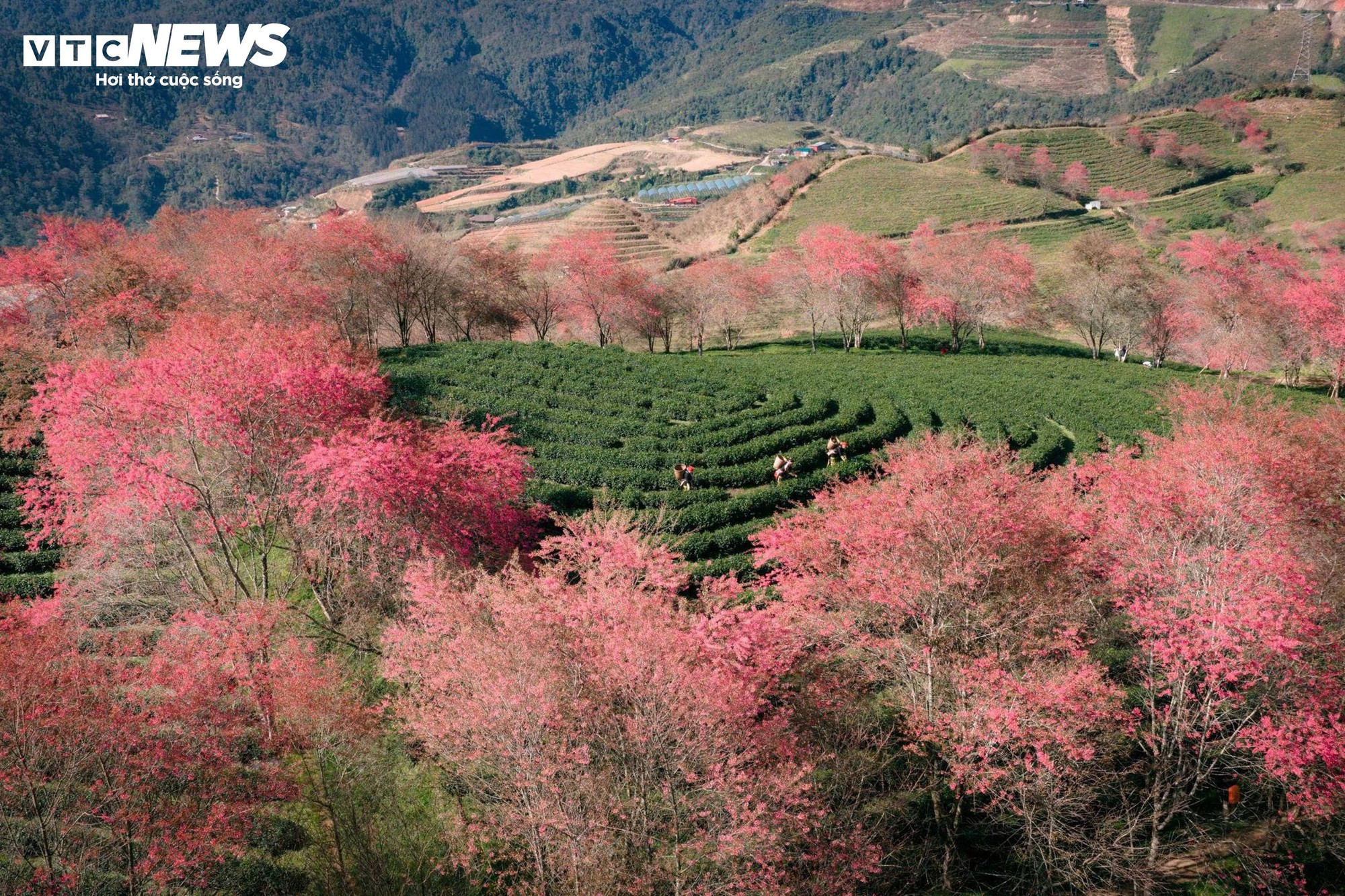 Cuối năm, đồi chè Ô Long (Lào Cai) được bao phủ thêm sắc hồng của hoa mai anh đào, đặc biệt năm nay là mùa hoa cuối trước khi nơi đây được quy hoạch cho dự án mới.