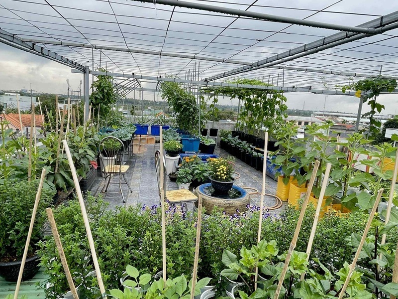 Tận dụng khoảng không gian trống trên cao, gia đình chị Ngọc (Đà Nẵng) đã kiến tạo nên một khu vườn “mùa nào thức nấy”. Không chỉ cung cấp nguồn thực phẩm sạch dồi dào, khu vườn còn là nơi thư giãn, gắn kết các thành viên sau những giờ làm việc căng thẳng.