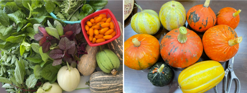 Việc trồng đa dạng chủng loại giúp bữa ăn của gia đình 3 người luôn phong phú và đảm bảo dinh dưỡng.