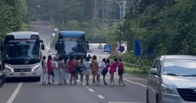Theo đoạn clip đăng tải, tại một khúc cua nguy hiểm với nhiều phương tiện giao thông tham gia, một nhóm du khách nữ khoảng 14 người vô tư dàn hàng chụp ảnh giữa đường. Lúc này, khoảng 4-5 chiếc ô tô cỡ lớn khác đang di chuyển từ khúc cua đi vào nhưng nhóm khách này vẫn ngang nhiên đứng xếp thành hàng dài cho đến đoàn xe khi xe đến gần mới tản ra.