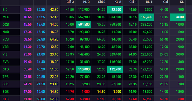 Cùng với MSB, một số cổ phiếu ngân hàng tầm trung là VIB, SSB và TPB cũng tiếp tục thể hiện phong độ ấn tượng khi duy trì được sắc xanh sau phiên tăng trần ngày hôm qua.