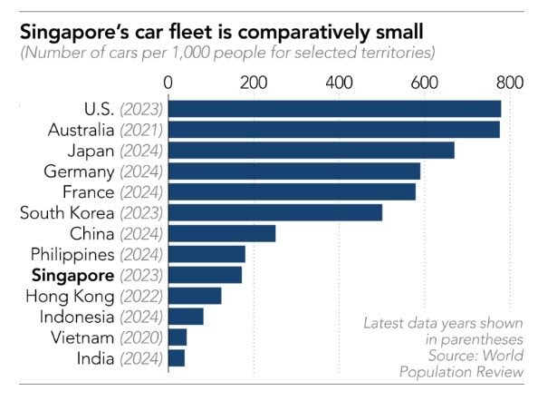 Theo Nikkei, Singapore từ lâu đã nổi tiếng là nơi đắt đỏ nhất thế giới để sở hữu một chiếc ô tô. Hệ thống Giấy chứng nhận quyền sở hữu xe (COE), vốn là tấm vé thông hành có thời hạn 10 năm, đã tăng giá gấp đôi trong một thập kỷ qua.