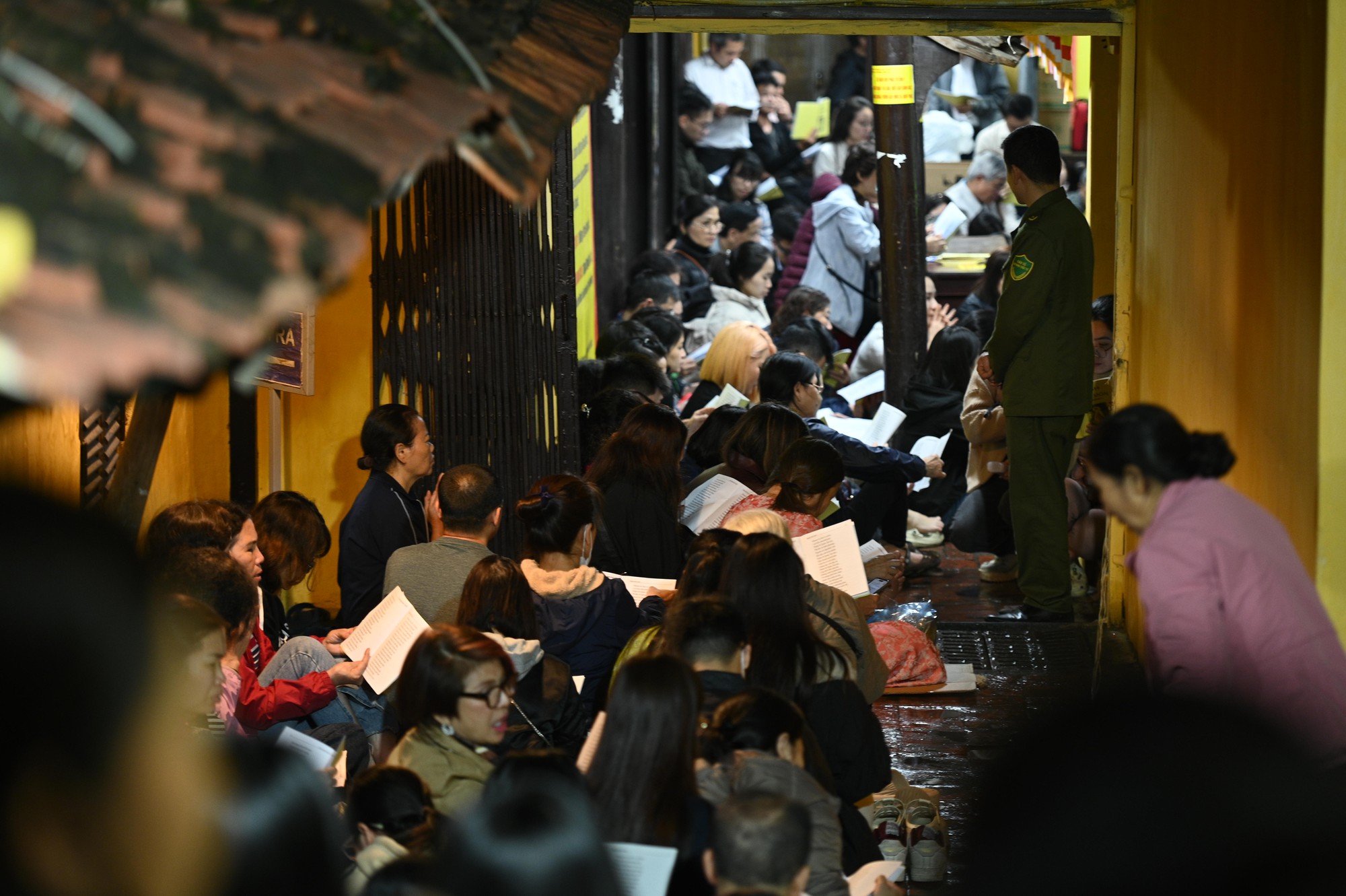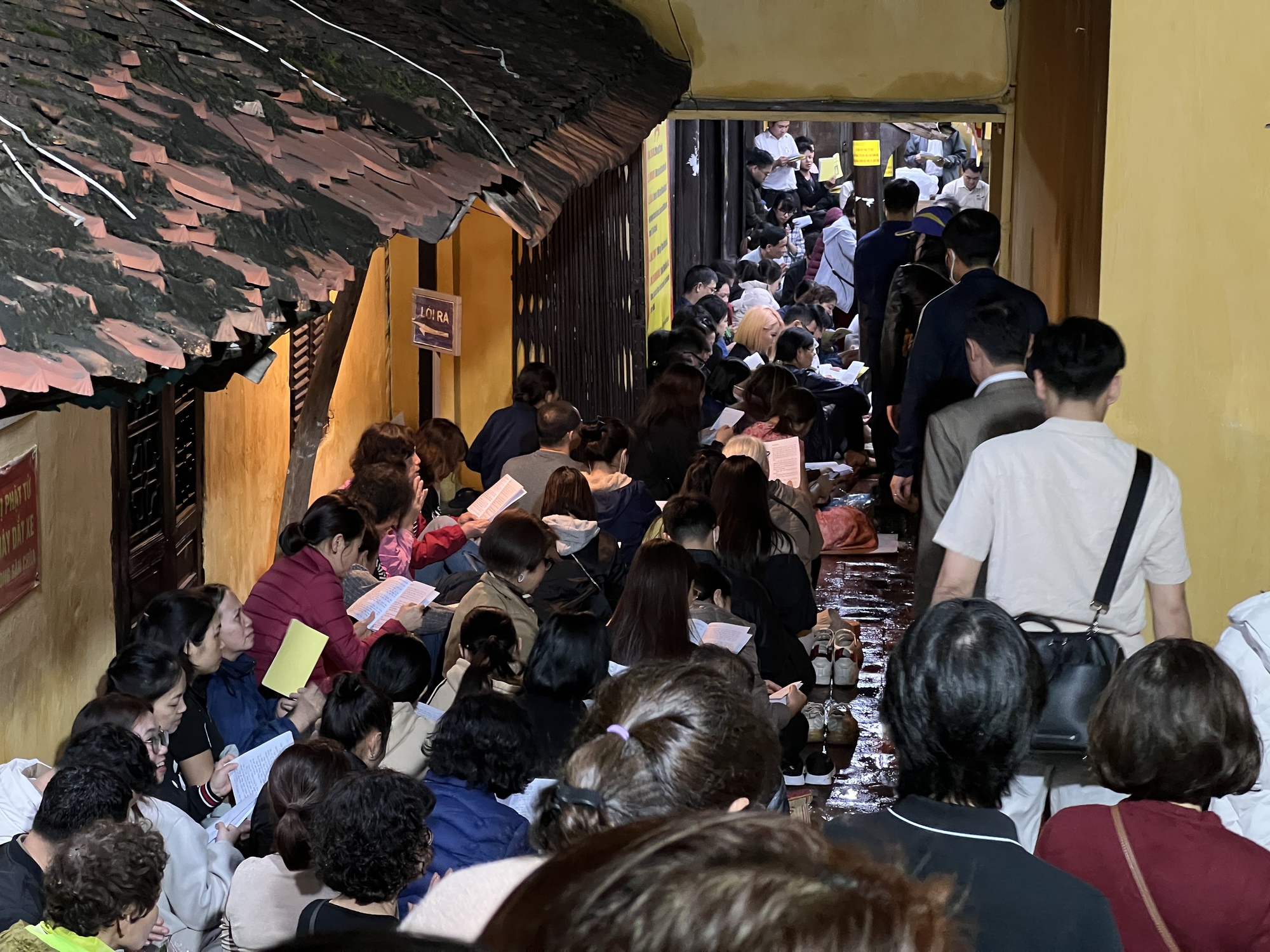 Cả những lối đi lại của chùa cũng đều chật kín người