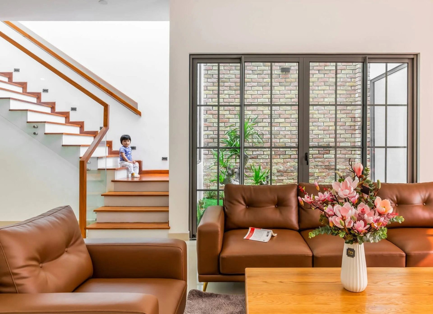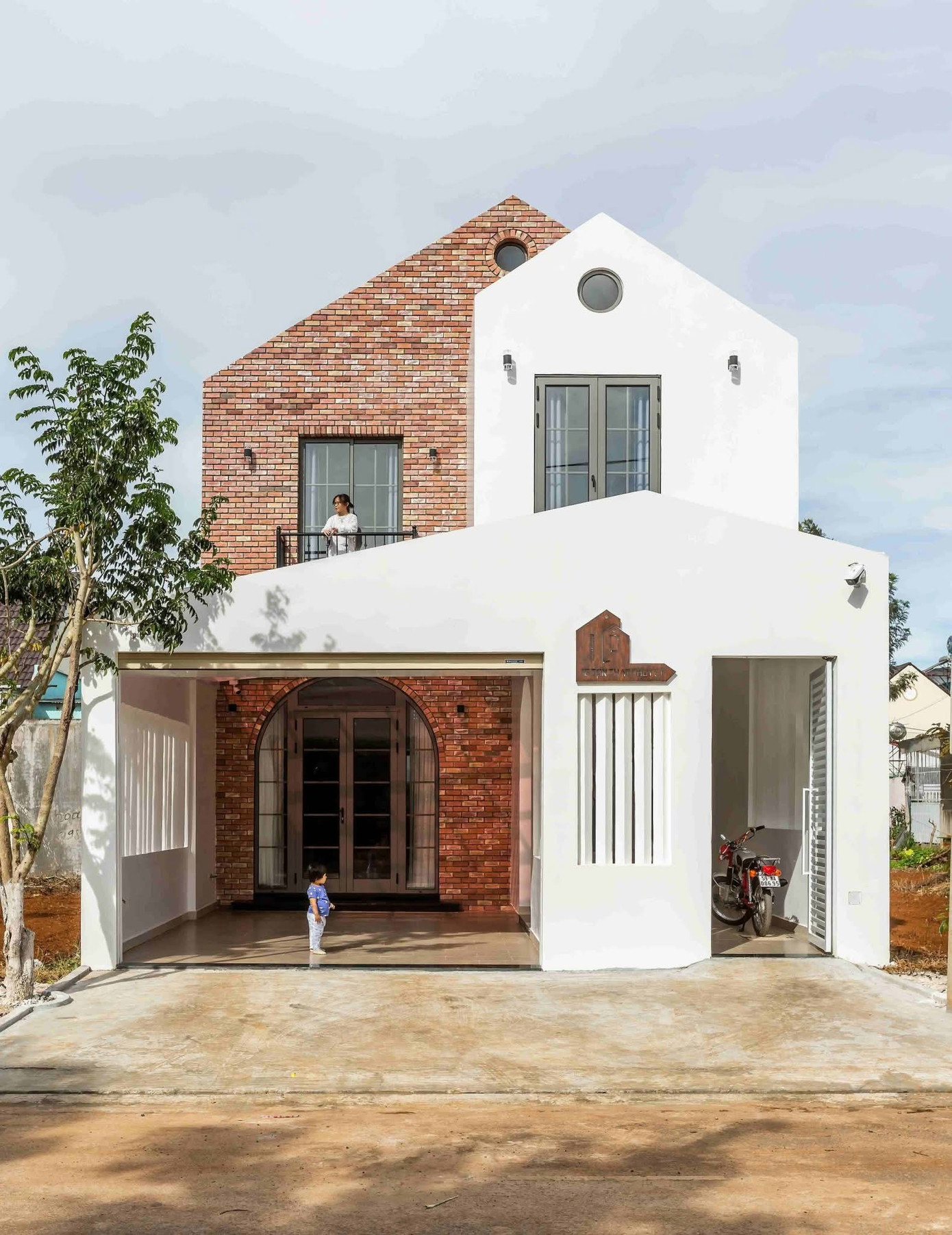 Mặt tiền hòa quyện giữa gạch giả cổ và tông trắng hiện đại tạo nên diện mạo vừa cá tính vừa gần gũi. Bố trí các khu vực sinh hoạt linh hoạt, từ phòng khách, bếp ăn đến phòng ngủ của các thế hệ, giúp gia đình nhỏ luôn gắn kết nhưng vẫn giữ được sự riêng tư cần thiết.