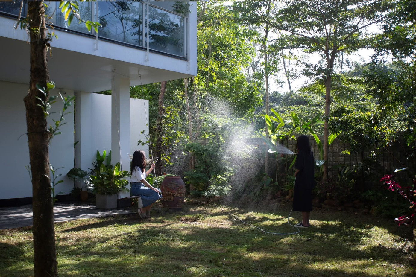 Công trình là sự hòa quyện tinh tế giữa truyền thống và hiện đại, nơi thiên nhiên không chỉ hiện diện bên ngoài mà trở thành một phần của đời sống gia đình.