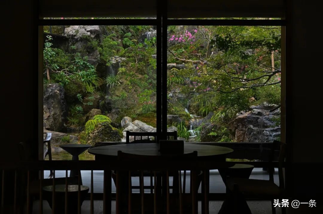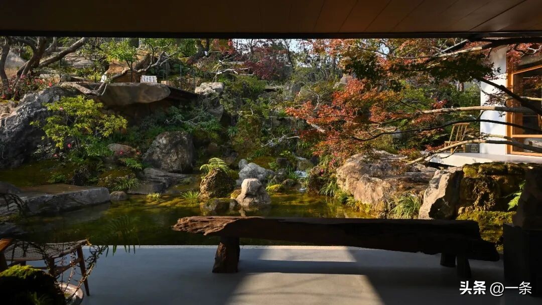 Một điểm nhấn đặc biệt của khu nhà vườn là hệ thống thác nước phân tầng. Nguồn nước bắt đầu từ trên đỉnh núi, sau đó chảy xuống các khu vực trung gian, tiếp tục đổ vào hồ nước dưới cây cầu đá và cuối cùng tràn xuống bãi cỏ bằng phẳng, tạo thành dòng thác nhiều tầng. Ngoài ra, kiến trúc sư này còn xây dựng một gian nhà gỗ truyền thống để ngắm trăng vào ban đêm.