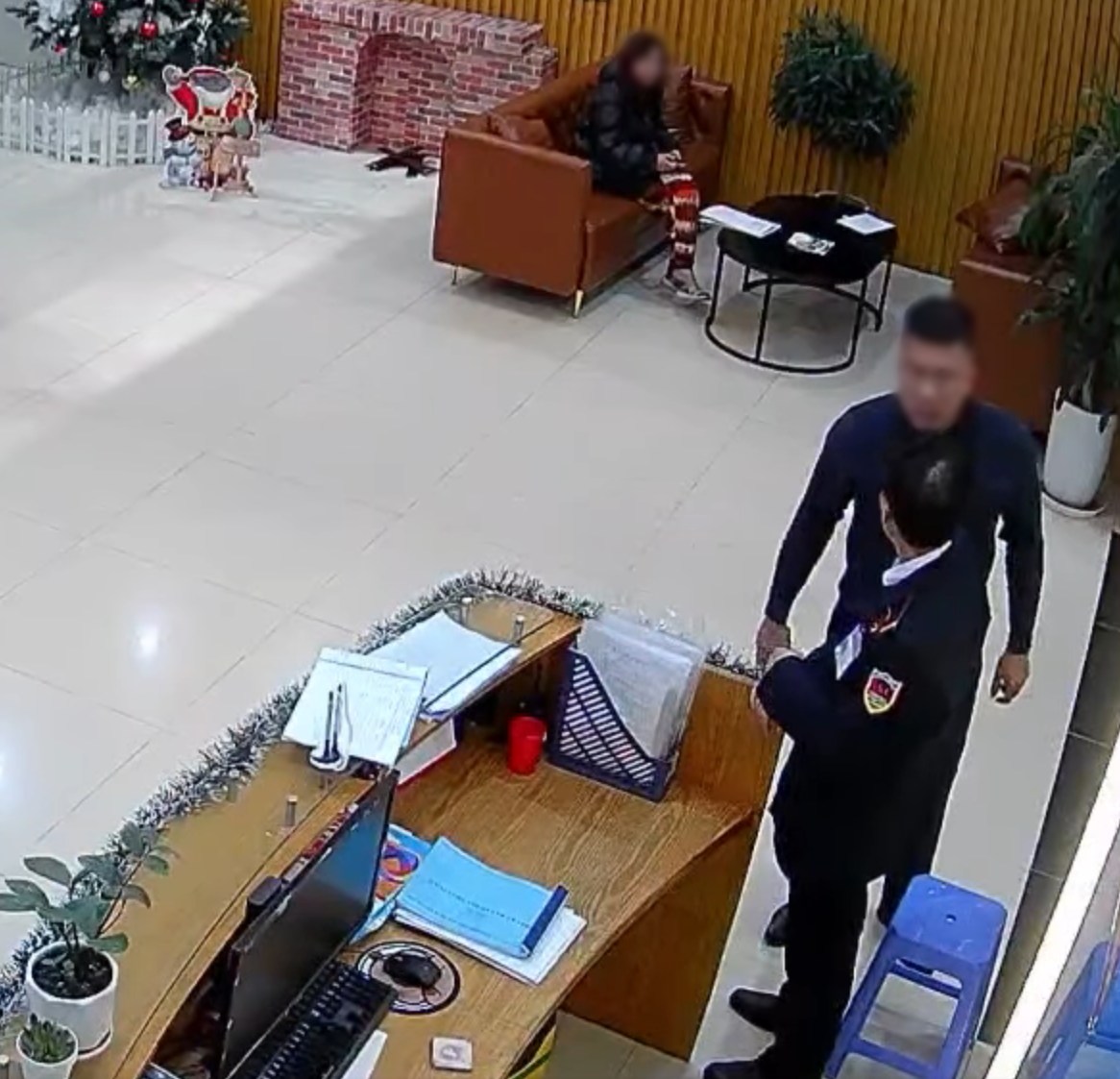 Nam bảo vệ ngồi dưới sảnh đã nhắc nhở người đàn ông phải lưu lại thông tin ra vào ở quầy lễ tân. Bất ngờ người đàn ông sửng cồ, quay ra lớn tiếng chửi bới và nói rằng có nhà ở đây nên không việc gì phải khai báo.