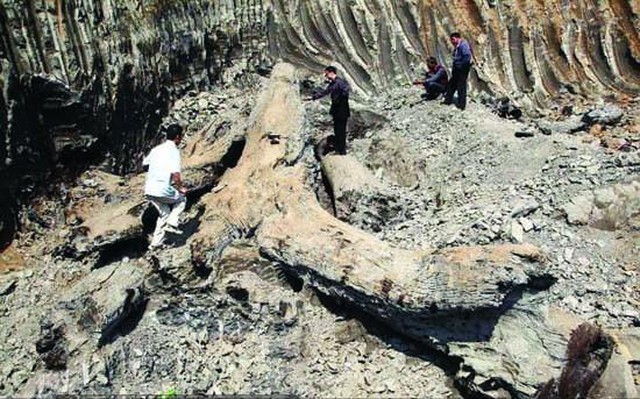 Khi đào sâu hơn, mọi người phát hiện bốn khúc cây lớn dưới lòng đất, cây lớn nhất có đường kính khoảng 2m và dài gần 20m. Để đưa những cây gỗ này lên, người dân phải đào một hố sâu hơn 10m. Khi các chuyên gia nhặt mảnh gỗ rơi ra, họ nhận thấy thớ gỗ rất rắn chắc và tỏa ra 1 mùi thơm thoang thoảng, khác hẳn gỗ thông thường.