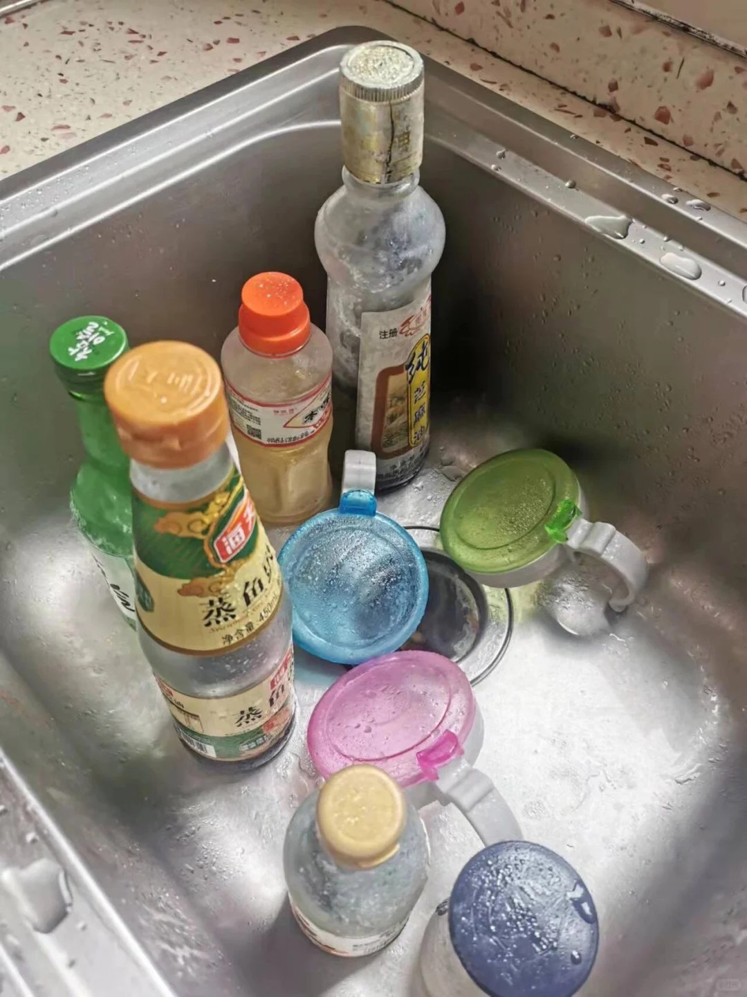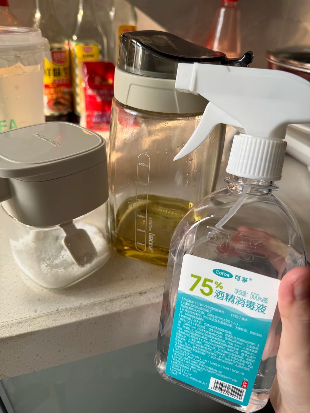 1. Lọ gia vị dính dầu: dùng cồn thay vì nước rửa