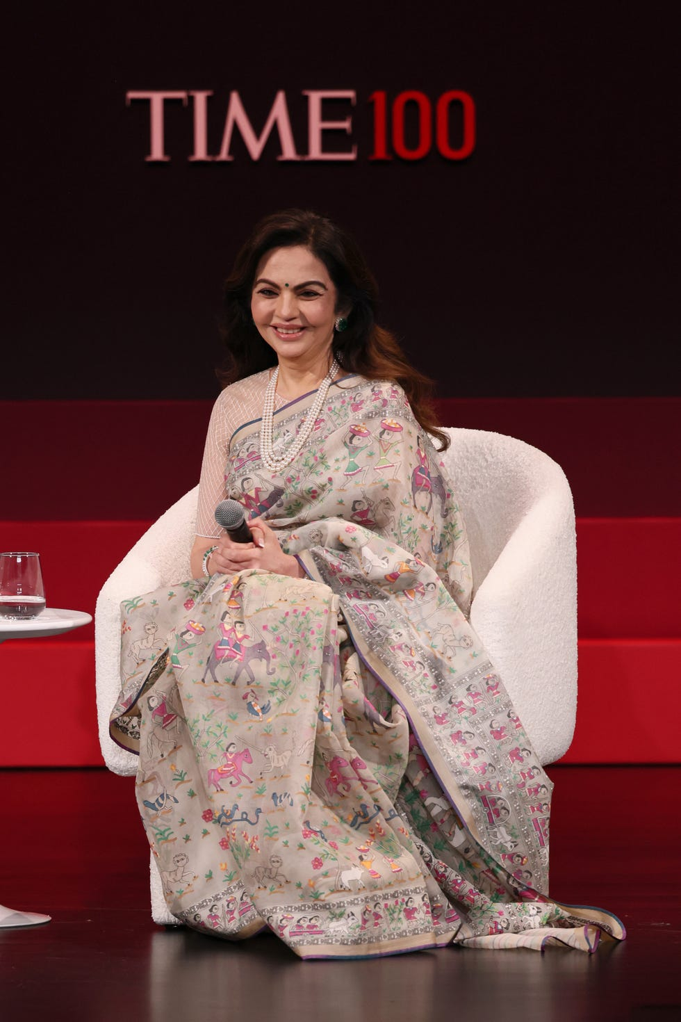 Trước đó một ngày, tại TIME100 Summit, bà cũng xuất hiện trong một bộ sari Jamdani tinh xảo. Thiết kế này còn phải mất đến 2 năm để hoàn thiện nhờ kỹ thuật thêu và dệt thủ công cực kỳ phức tạp. Điều đó càng củng cố hình ảnh bà Nita, từ một người phụ nữ giàu có số 1 châu lục liên tục gắn liền với các giá trị bền vững và chiều sâu văn hóa của đất nước Ấn Độ