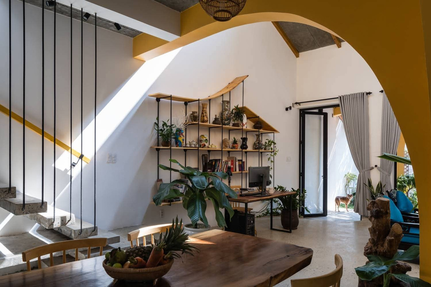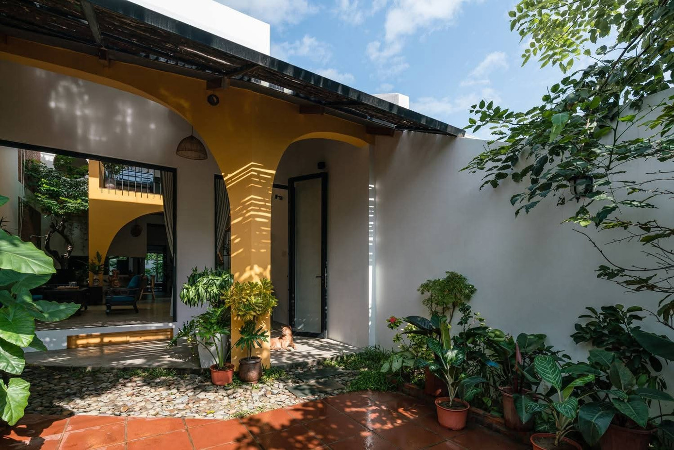 Từ tường vàng, cửa vòm mềm mại đến những khe sáng nhảy múa trên sàn và tường nhà, từng chi tiết nhẹ nhàng gợi nhớ về vẻ đẹp dung dị của mái ngói đỏ và bức tường theo thời gian.