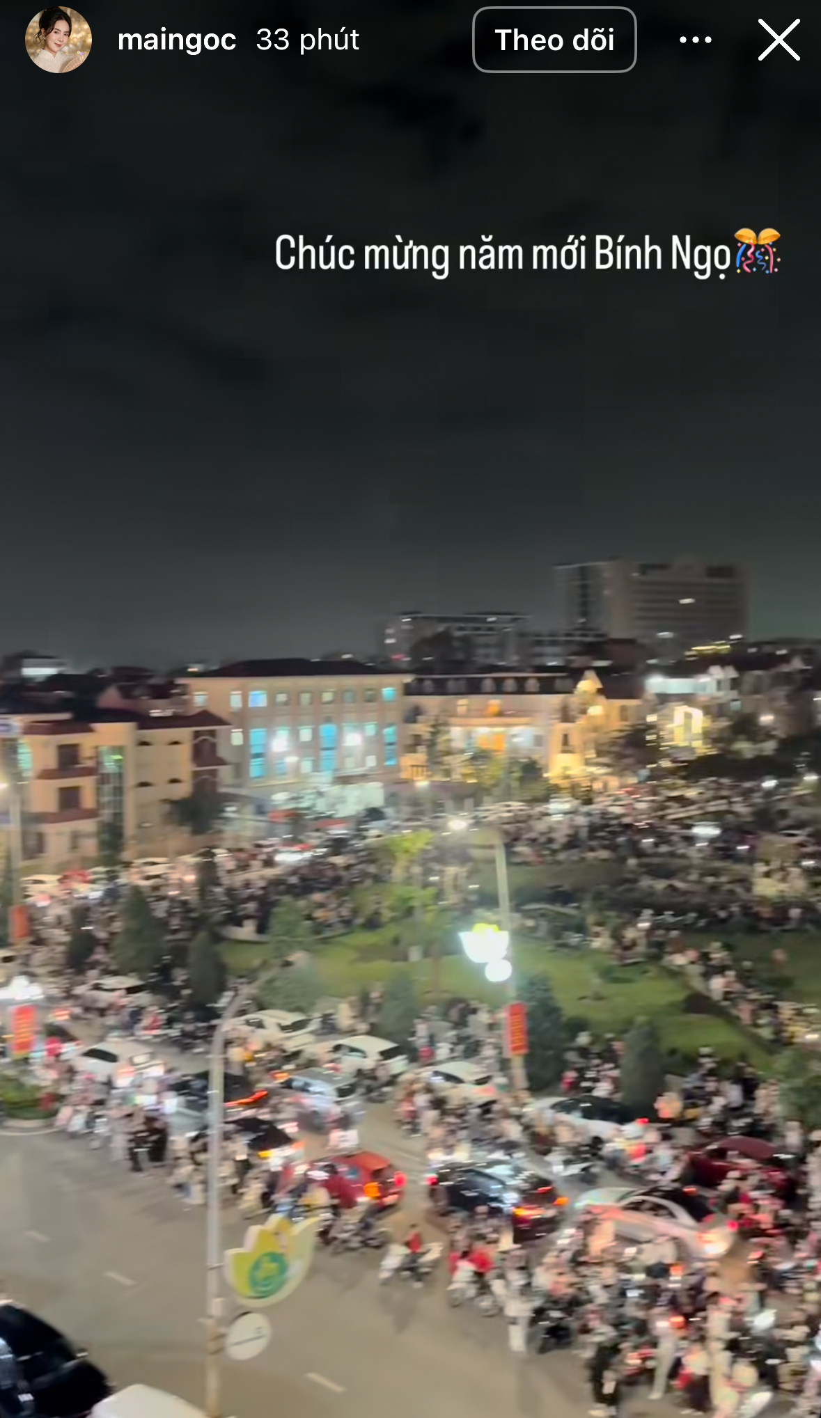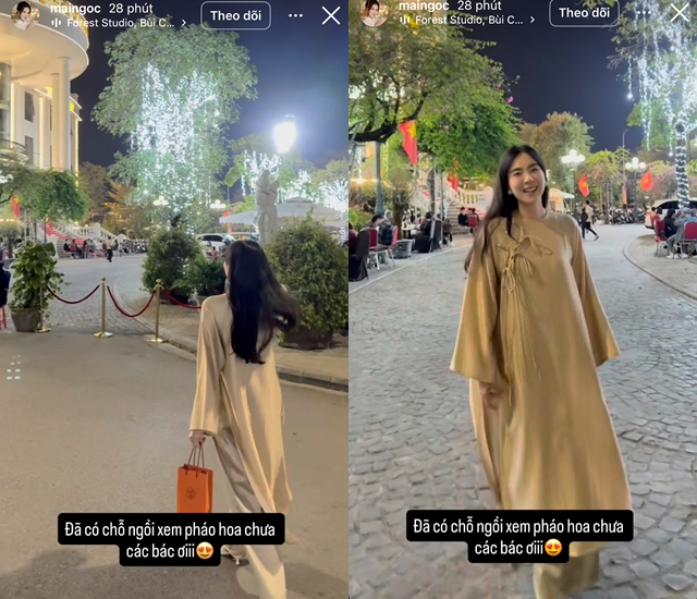 Trên MXH, một đường đua khác cũng diễn ra sôi động không kém đó là: Ăn diện xinh đẹp ngắm pháo hoa, cầu cho 1 năm mới bình an. "Mở bát" là Mai Ngọc.