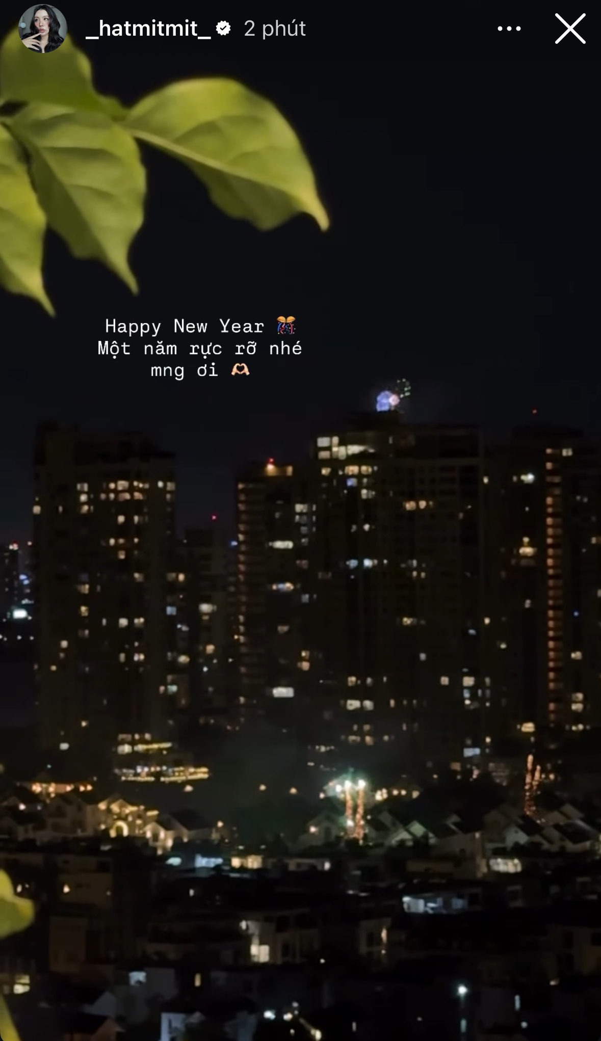 Hạt Mít khoe khoảnh khắc ngắm pháo hoa từ trên chung cư, gửi lời nhắn nhủ năm mới rực rỡ.