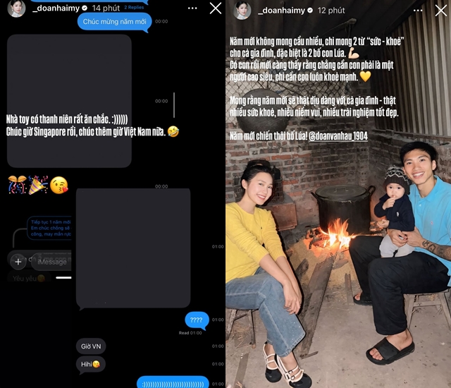 Doãn Hải My được chồng nhắn chồng chú mừng năm mới dù đã kết hôn, sinh con vẫn tình như ngày đầu. Cô cũng gửi gắm nhiều lời chúc bình an, sức khỏe.