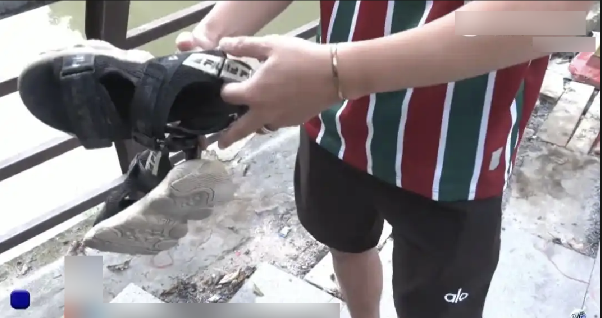 Hoảng hốt, anh Quan lập tức gọi điện cho cửa hàng, hỏi lý do vì sao cá sấu vẫn còn sống mà không hề được thông báo trước. Theo anh, phía cửa hàng thậm chí còn đề nghị anh dùng chân đạp lên cá sấu để giữ nó đứng yên. Trong lúc làm theo chỉ dẫn này, con cá sấu vùng vẫy dữ dội và còn cắn vào chân, làm rách đôi dép anh đang mang.