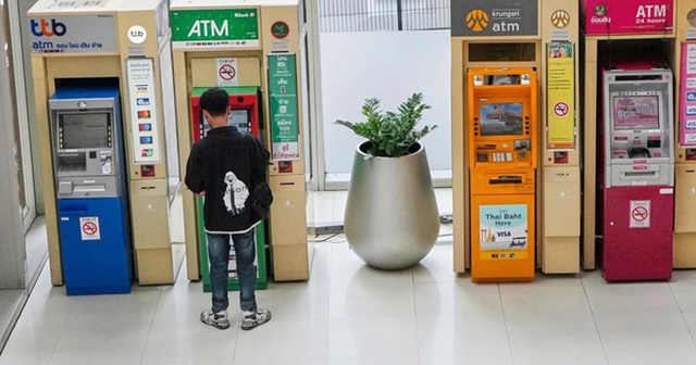 Khách hàng sử dụng máy ATM tại thủ đô Bangkok - Thái Lan hồi tháng 8-2025 Ảnh: AP